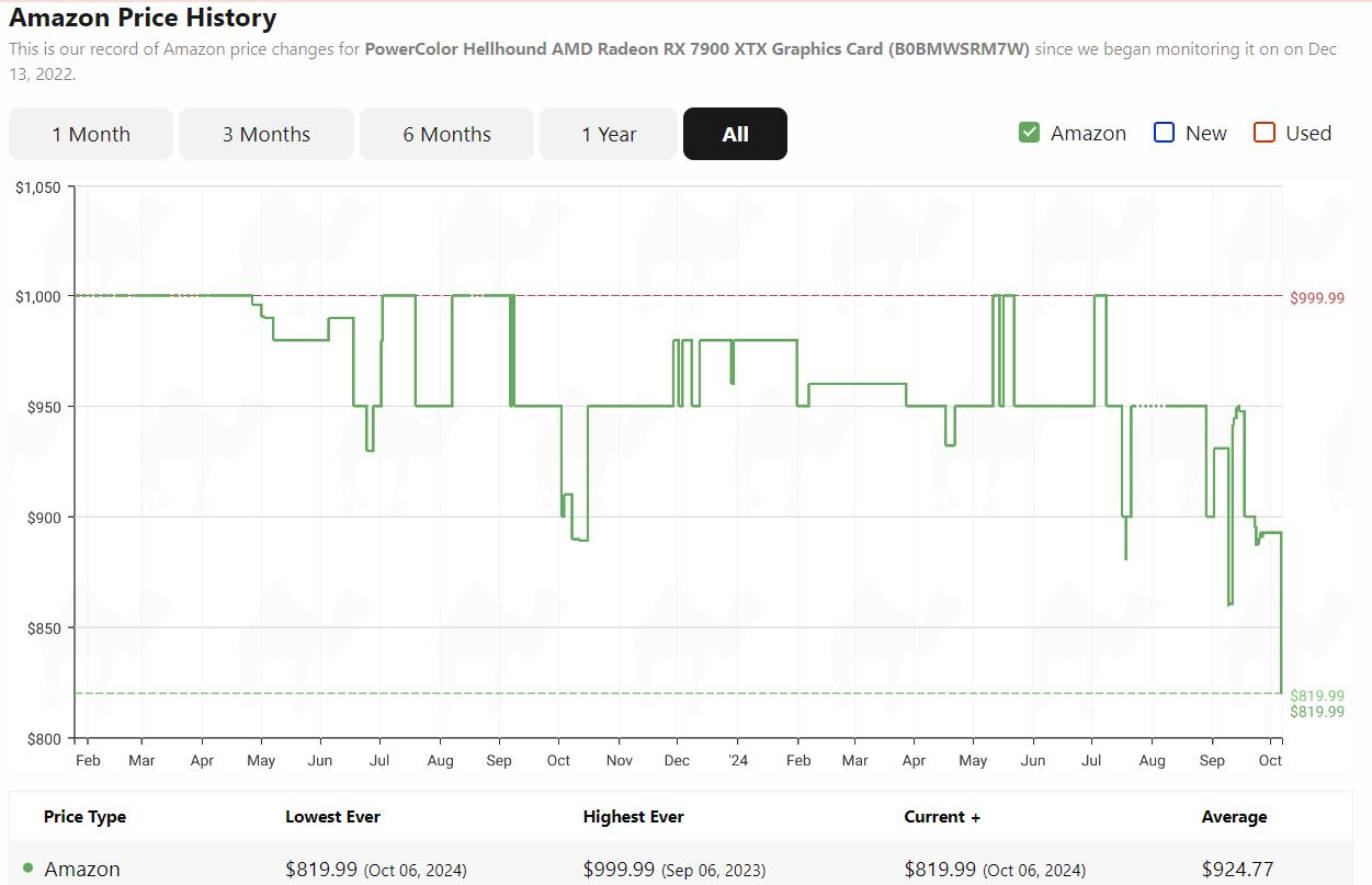 The pricing delta between the RX 7900 XTX and the RTX 4080 Super has now increased even further. The PowerColor Hellhound RX 7900 XTX is now retailing for only $819.99 on Amazon. This record-low price of the card is $120 lower than the $999.99 launch MSRP.