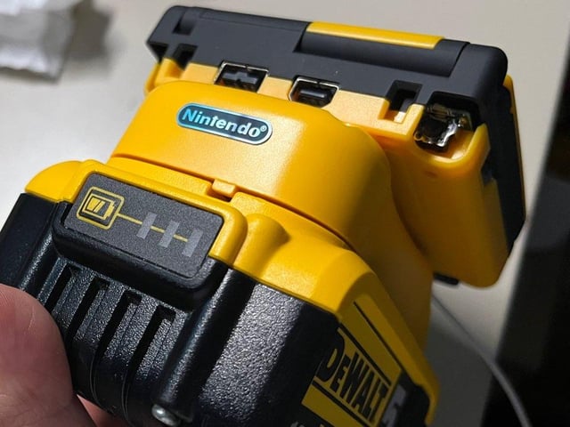 According to u/Bangooh, a single charge is enough to “play most RPGs from start to finish” – theoretically offering around 404 hours of runtime, or nearly 17 days of nonstop gaming. The design is equally impressive: he matched the color scheme to DeWalt’s signature look, complete with both Nintendo and DeWalt logos. The result looks so polished that many Reddit users joked it could be an official product – purpose-built for the job site.