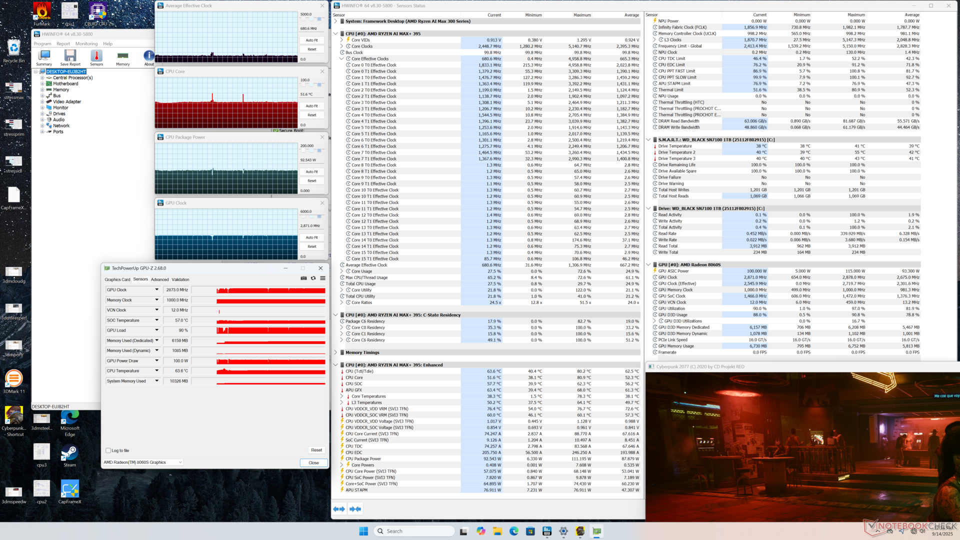 The Framework Desktop is more efficient than the GMK EVO-X2 even though both come equipped with the same Ryzen AI Max Ryzen AI Max+ 395 processor for the same level of performance. Running Prime95 or Cyberpunk 2077 would demand ~144 W each compared to ~178 W on the GMK system as shown by the comparison chart below.