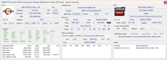| Framework Desktop Ryzen AI Max Ryzen AI Max+ 395, Radeon 8060S, WD PC SN7100S SDFPMSL-1T00-1101, , x, | GMK EVO-X2 Ryzen AI Max+ 395, Radeon 8060S, Crucial P3 Plus CT1000P3PSSD8, , x, | BOSGAME M5 Ryzen AI Max+ 395, Radeon 8060S, Kingston OM8PGP42048N-A0, , x, | HP Z2 Mini G1a Ryzen AI Max+ PRO 395, Radeon 8060S, Samsung PM9A1 MZVL22T0HBLB, , x, | HP ZBook Ultra G1a A3ZQ0ET Ryzen AI Max PRO 390, Radeon 8050S, SK hynix PC801 HFS001TEJ9X101N, IPS LED, 1920x1200, 14" | Geekom A9 Max, AI 9 HX 370 Ryzen AI 9 HX 370, Radeon 890M, Lexar NQ7A1, , x, | |