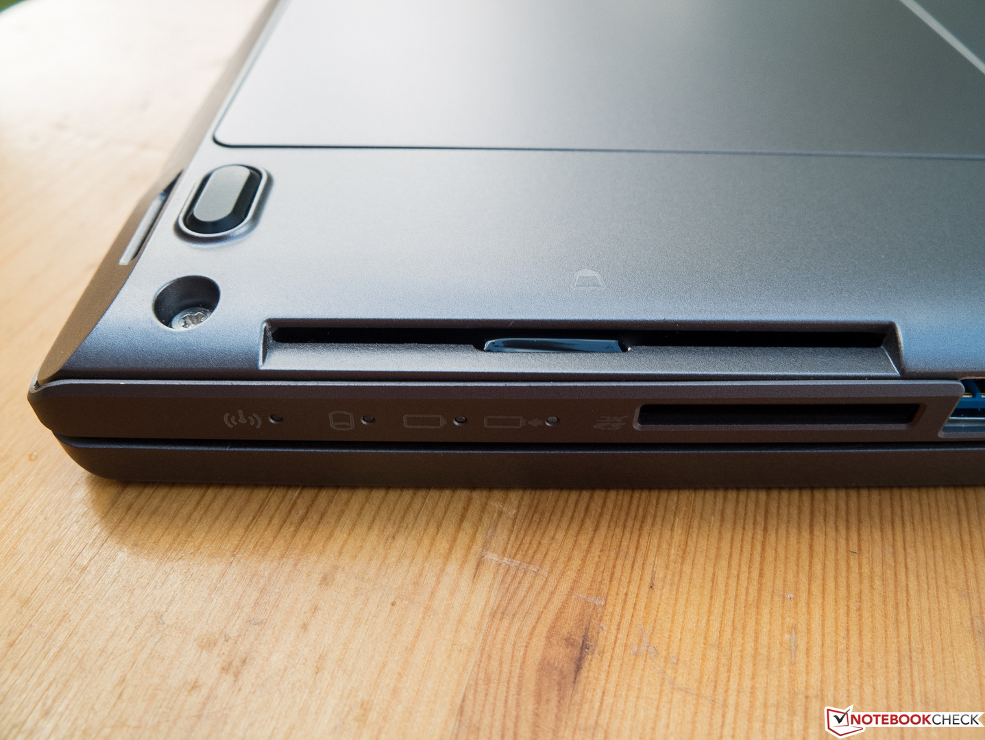 Fujitsu has installed a fast solid-state drive in the LifeBook. The SSD comes from Samsung and has a total capacity of 256 GB. The owner has approximately 200 GB available for use. The rest is reserved for the recovery partition and Windows installation. The SSD achieves good transfer rates. It is a 2.5-inch model (7 mm/~0.27 in height). Theoretically, replacing the SSD would be easy, but it proved difficult in practice. Since the LifeBook does not have a maintenance cover, the base unit's tray has to be removed for accessing the hardware. Even after removing all the screws, the tray still fits very firmly on both sides. Eventually we dispensed with opening the case to prevent damaging it.
