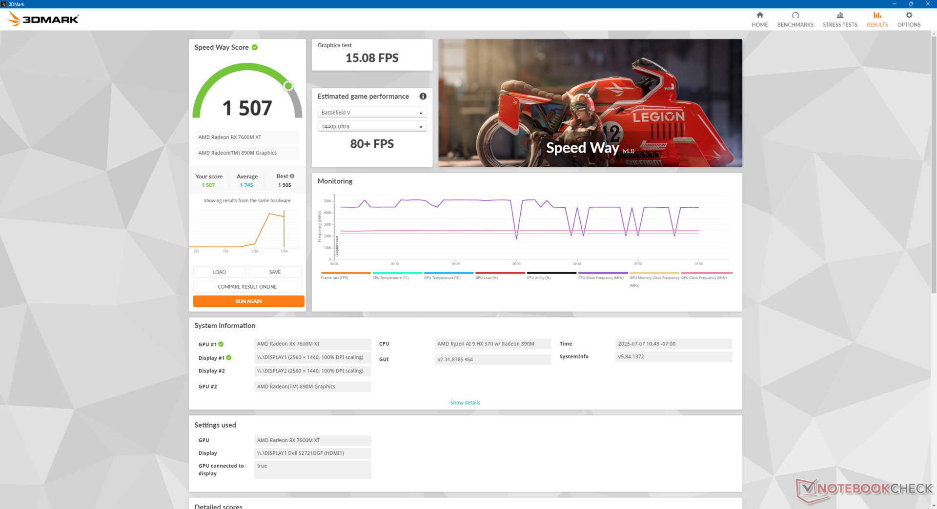 | Average AMD Radeon RX 7600M XT (n=1) | |