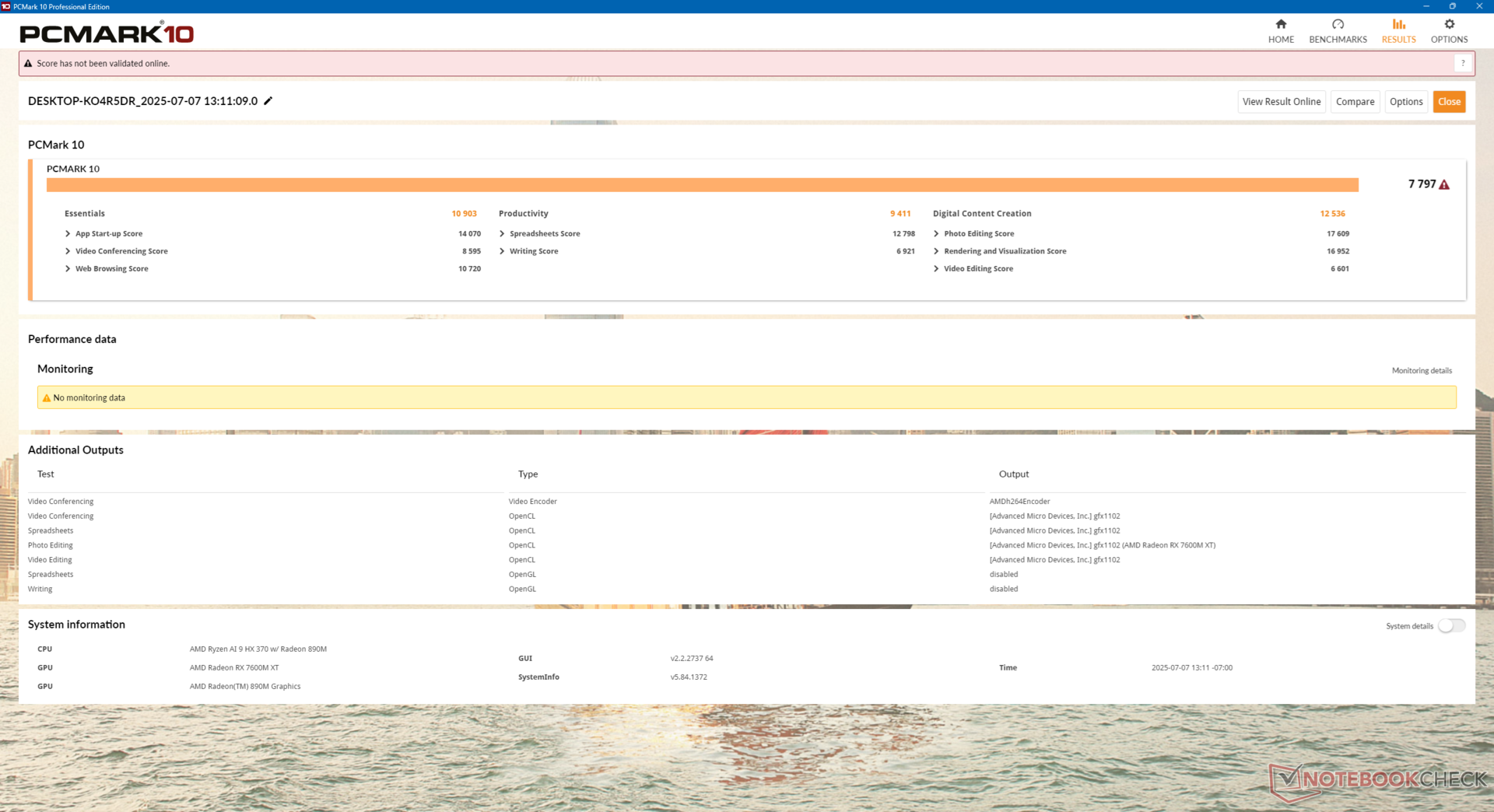 PCMark 10: Score | Essentials | Productivity | Digital Content Creation