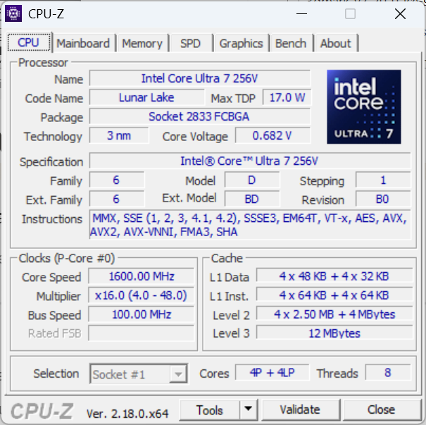 | Average Intel Core Ultra 7 256V (1500 - 1627, n=6) | |