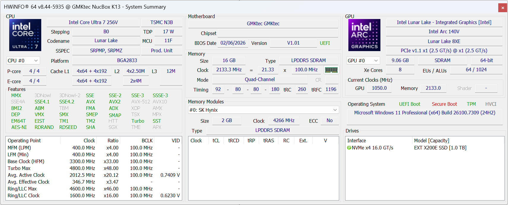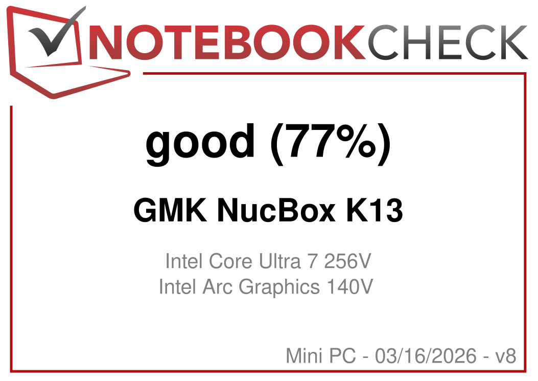 | GMK NucBox K13 Intel Core Ultra 7 256V ⎘ Intel Arc Graphics 140V ⎘ 16 GB Memory | List Price: 670 USD | 506 g | 36.6 mm | x | |
