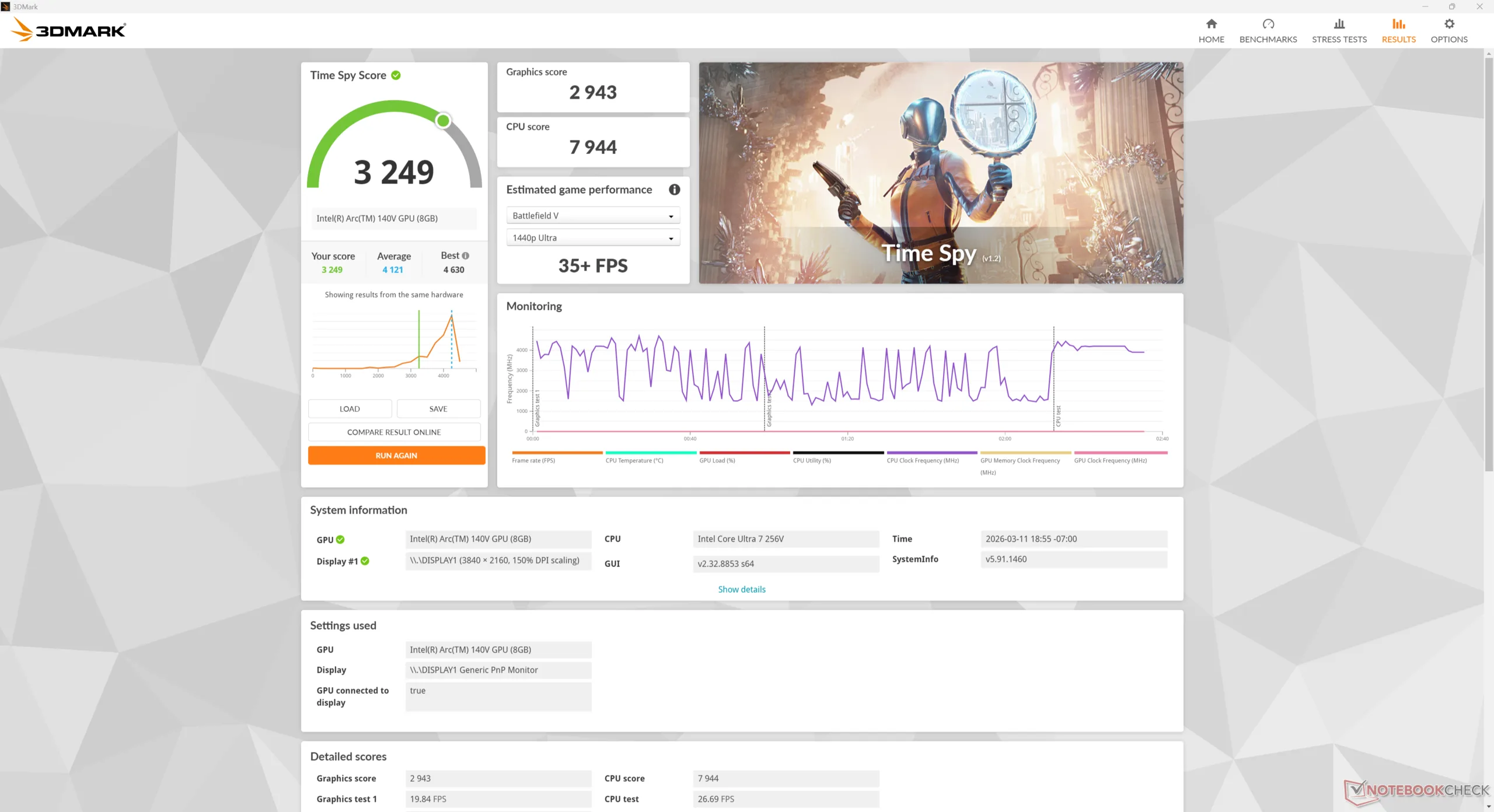 | 3DMark Time Spy Score | 3249 points | |