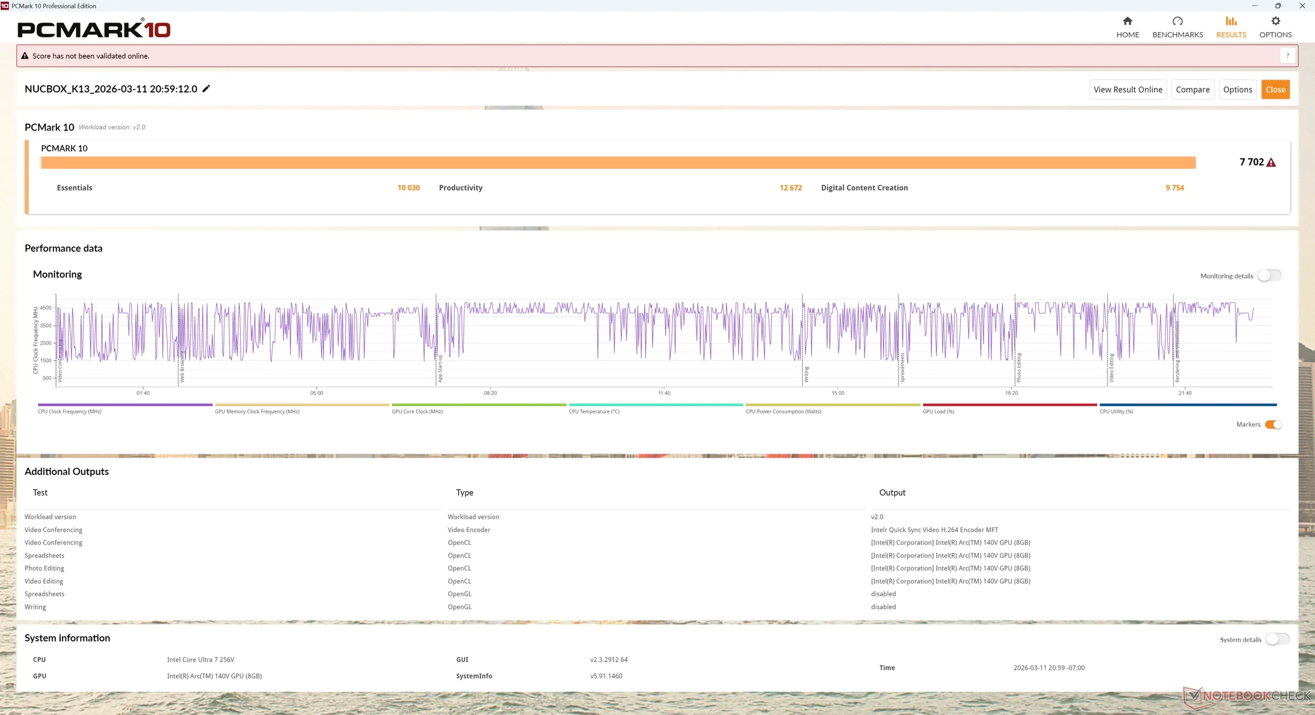 | Average Intel Core Ultra 7 256V (9852 - 11085, n=8) | |