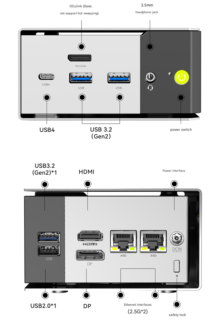 The good part is that the GMK M8 sports an OCuLink port, allowing users to pair the mini PC with an eGPU for better gaming performance (GMKtec AD-GP1 curr. $469.79 on Amazon). There is one USB4 port as well, which expands the eGPU compatibility and offers the option to hook high-speed accessories to the system. As for the other ports, they are as follows: