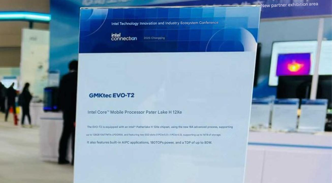 Roughly six months later and GMKtec has already confirmed details of an EVO-T1 successor. Showcased at Intel's latest Technology Innovation and Industry Ecology Conference, the EVO-T2 is the first Panther Lake-based mini-PC that we are aware of. According to GMKtec, the EVO-T2 will be available with a 'Panther Lake H 12xe' chipset set to be marketed under the Core Ultra 300H series.