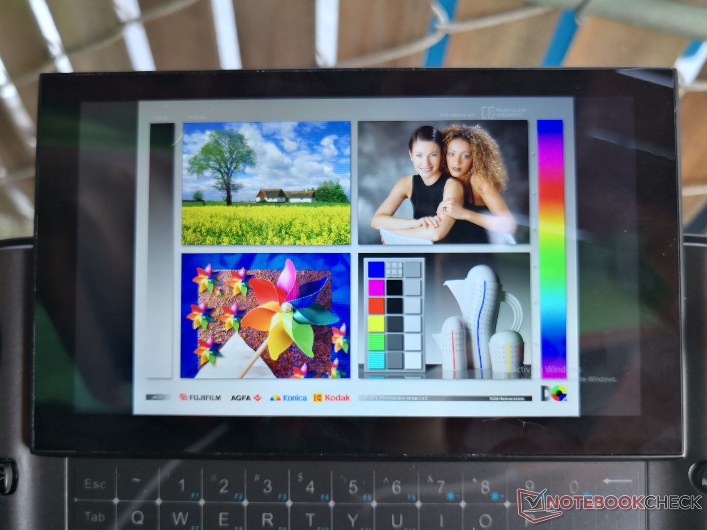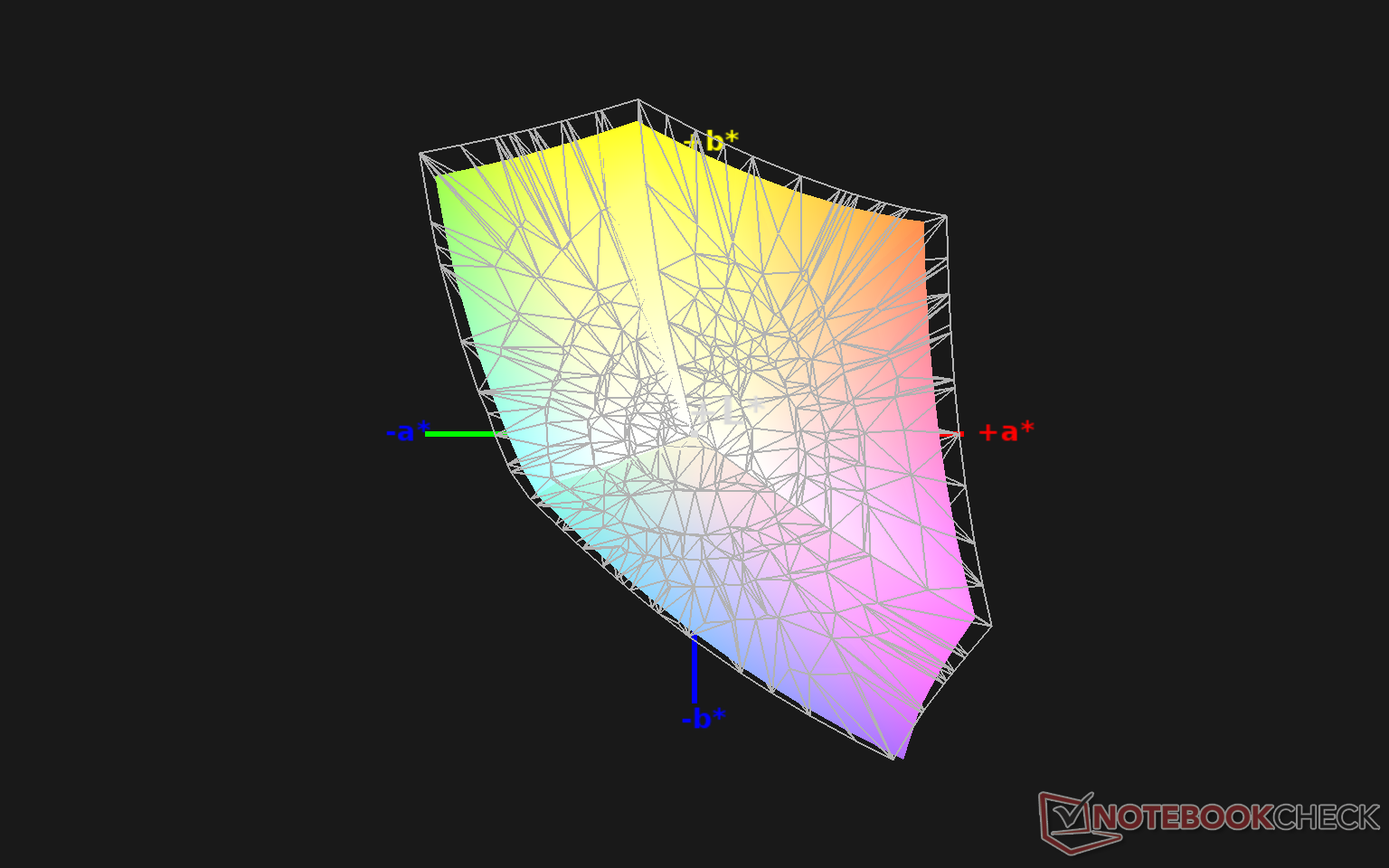 Color space covers approximately 89 percent of sRGB and 57 percent of AdobeRGB to be a bit narrower than the displays of most mid-range Ultrabooks but still much greater than low-end laptops that typically cover 60 percent of sRGB only. The deeper colors are welcomed even though the GPD isn't designed for any sort of professional editing.