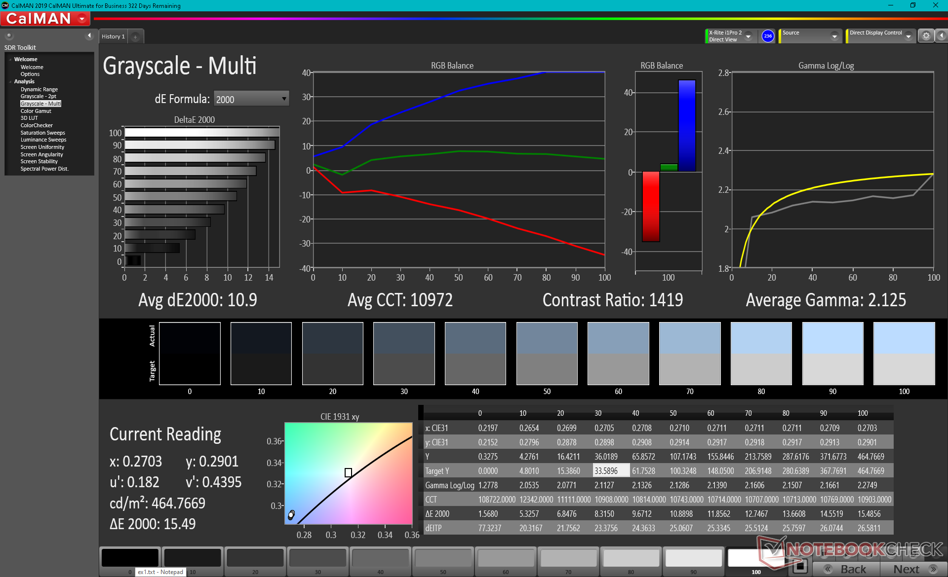 ΔE Greyscale Calman: 10.9 | ∀{0.09-98 Ø5}