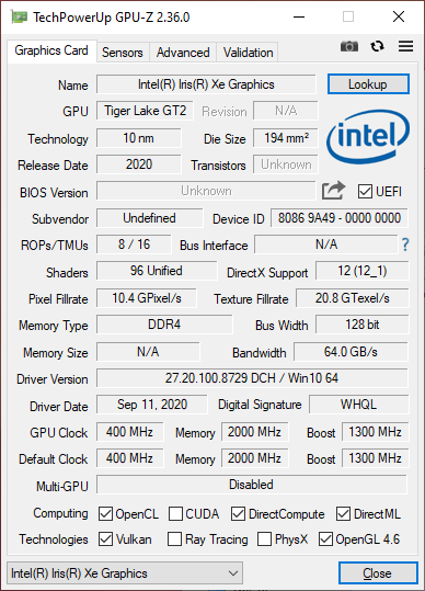 | 88.1 % v7 (old) | 10 / 2020 | Dell XPS 13 9310 Core i7 FHD i7-1165G7, Iris Xe G7 96EUs | 1.3 kg | 14.8 mm | 13.40" | 1920x1200 | |