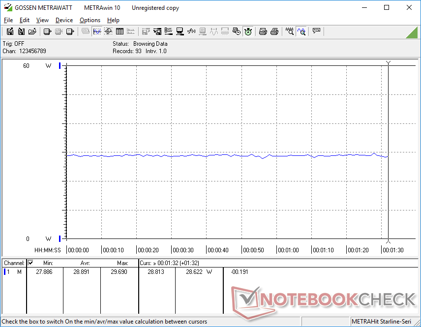 Idling on desktop at the lowest brightness setting draws just under 3 W while the maximum brightness setting demands about 1.5 W more. Gaming draws between 29 W and 39 W to be even greater than many laptops running on Core i7 Ice Lake CPUs like the HP Spectre x360 13 or ZenBook 13. Results are also close to what we observed on the XPS 13 9310 with a higher-end Core i7-1165G7 CPU. This can be quite the power-hungry machine in spite of its diminutive size.
