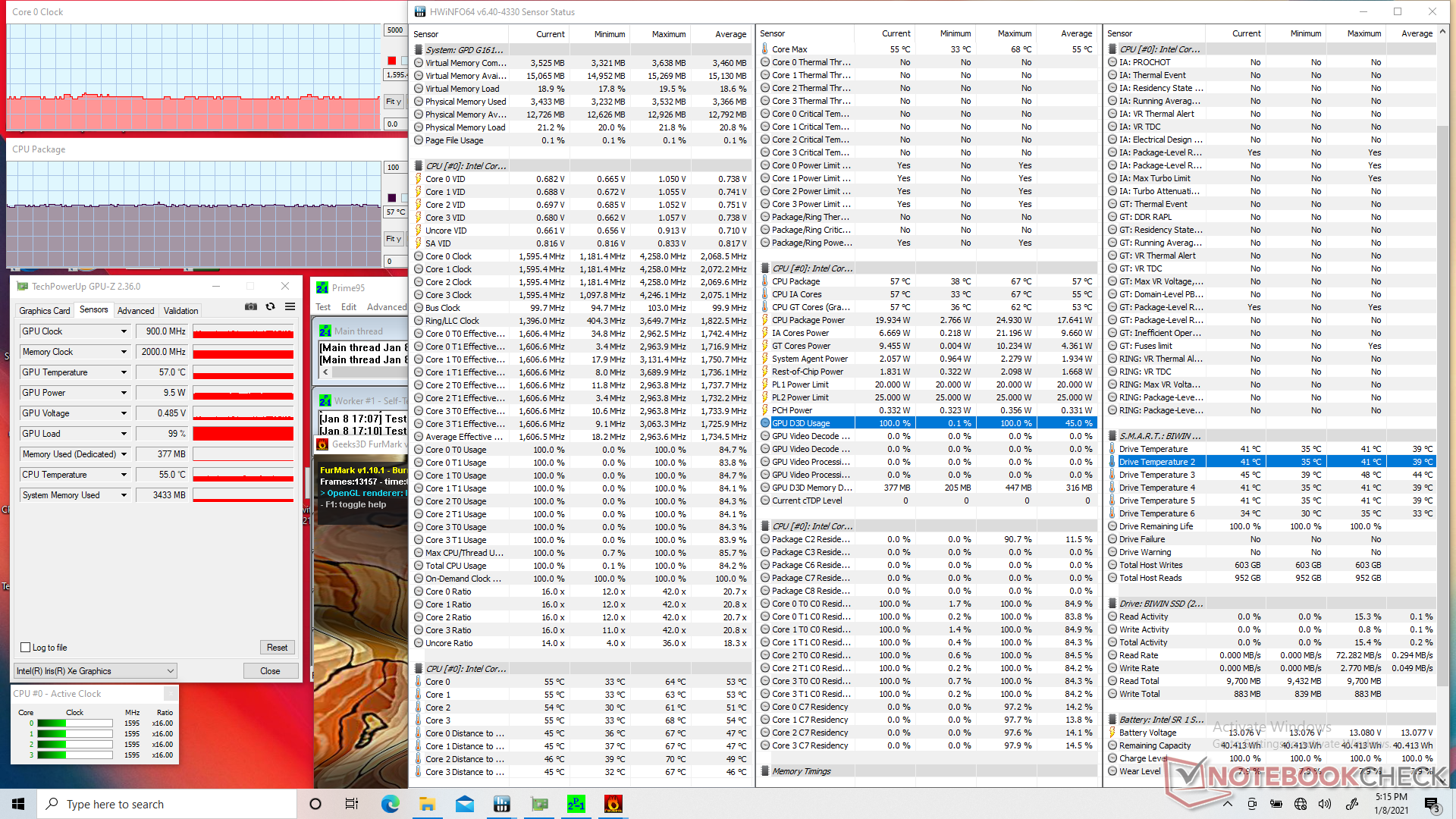 | Prime95 + FurMark Stress | 1.5 - 1.6 | 900 | 58 |