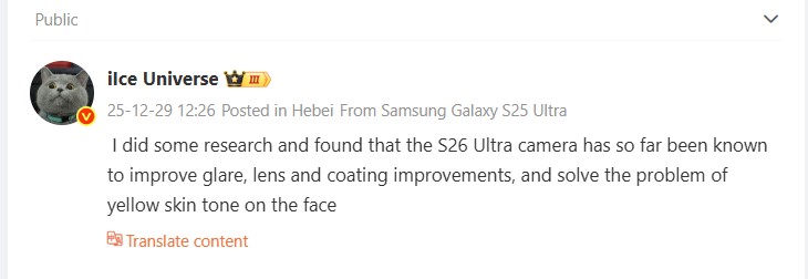 The upgraded 3x telephoto camera is equipped with the only new sensor, and even that could disappoint many customers, as Ice Universe has emphasized for months. Nevertheless, Samsung could still make meaningful improvements with the Galaxy S26 Ultra’s quad camera, as a recent Weibo post suggests. According to earlier indications, the significantly brighter optics of the upcoming camera flagship appear to be getting an improved coating to reduce artifacts such as lens flares. Samsung seemingly takes cues from Vivo or Sony, which rely on Zeiss T* coating for this exact purpose.