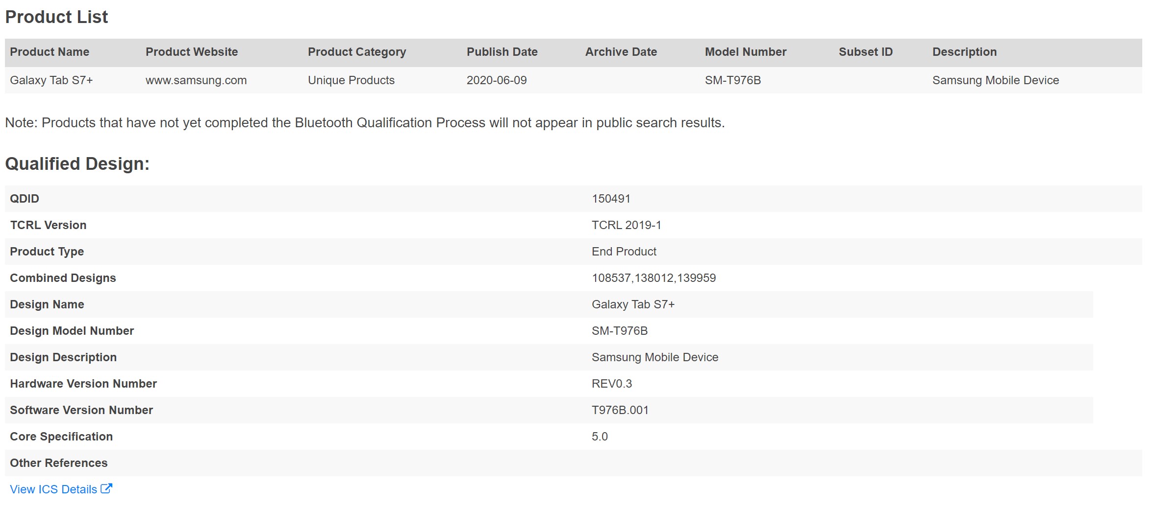 Separately, the Bluetooth SIG has recently certified the Galaxy Tab S7+. According to the listing, the Bluetooth SIG has certified the SM-T976B, which is thought to be the 5G version of the Tab S7+. The listing also confirms that the Tab S7 series will support Bluetooth 5.0, which was to be expected. It is safe to assume that Samsung will equip the Galaxy Tab S7 series with the Snapdragon 865, too.