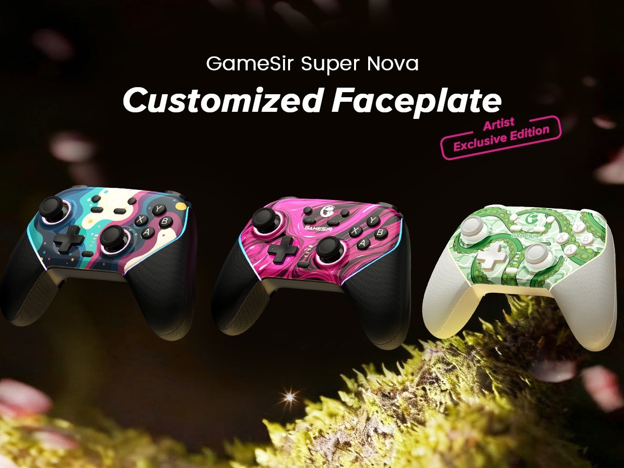 GameSir sells nine faceplates for the Super Nova game controller (curr. available on Amazon for $47.49). Priced at $9.99 per piece, the colors include Mystic Green, Plum Rose, Elite White, Light Green, and Vibrant Orange. Now, GameSir has announced three limited edition faceplates that are made by artists.