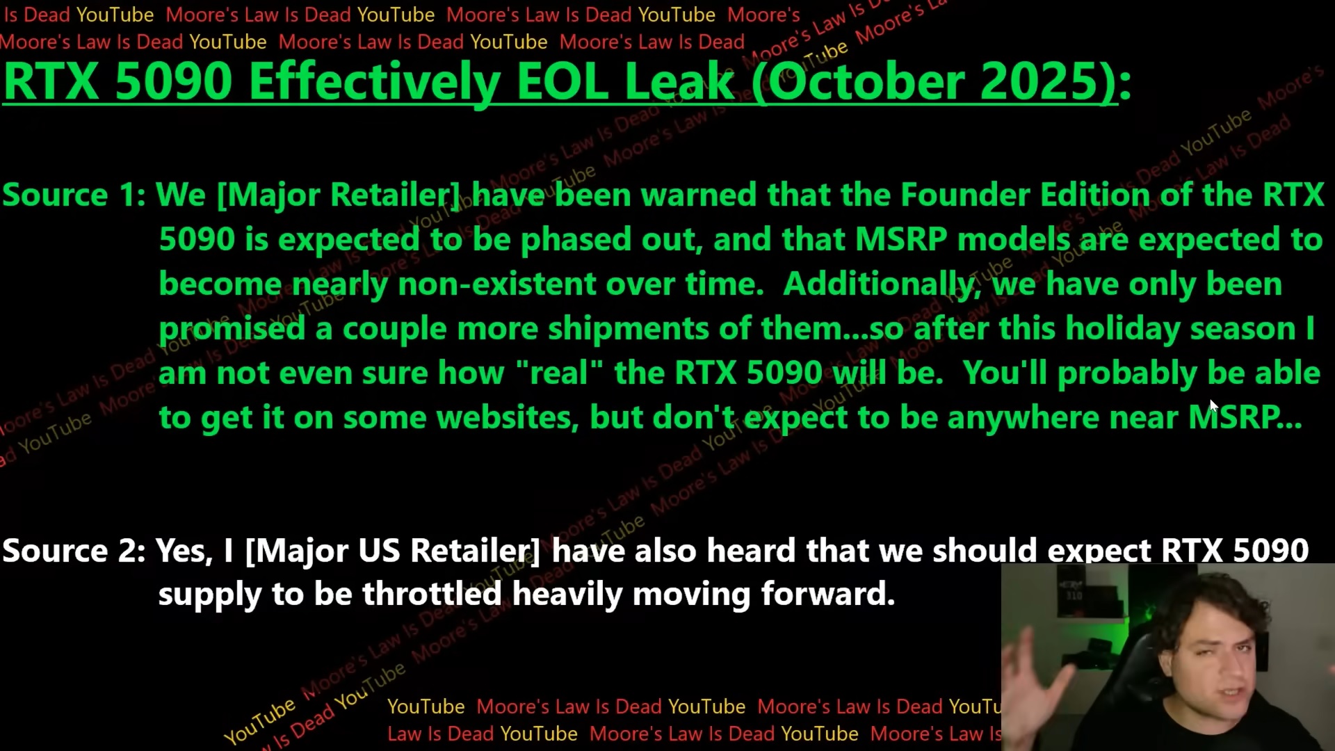 Q4 could be the last chance for RTX 5090 fans to snag the GPU. In a recent video, serial leaker Moore’s Law Is Dead claimed the GeForce RTX 5090 has “effectively” reached its End of Life (EOL). The leaker explained that this doesn’t mean you won’t be able to get an RTX 5090 at all, but that getting one at MSRP would be next to impossible come Q1 2026.