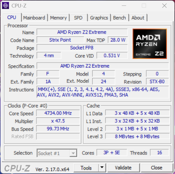 | MSI Claw A8 BZ2EM AMD Ryzen Z2 Extreme ⎘ AMD Radeon 890M ⎘ 24 GB Memory, 1024 GB SSD | Amazon: 1. EXCaliberPC [2026] MSI Claw ... 2. EXCaliberPC [2026] MSI Claw ... 3. [2026] MSI Claw A8 BZ2EM-070... List Price: 999€ | 765 g | 24 mm | 8.00" 1920x1200 283 PPI IPS | |
