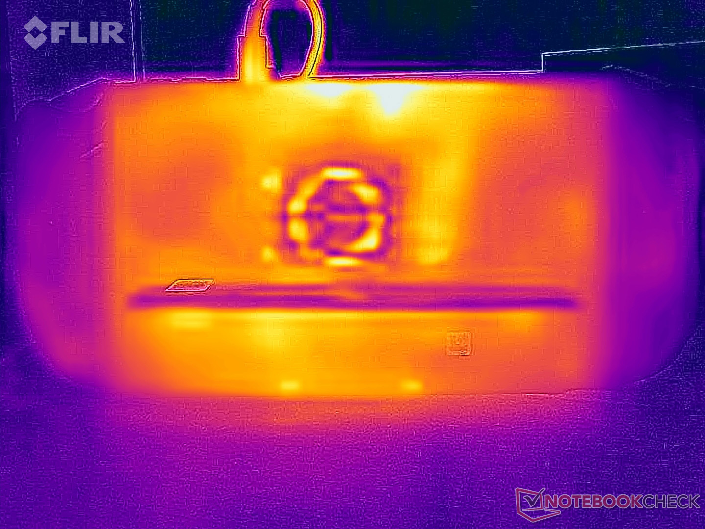 (-) The palmrests and touchpad can get very hot to the touch with a maximum of 42.5 °C / 108.5 F.