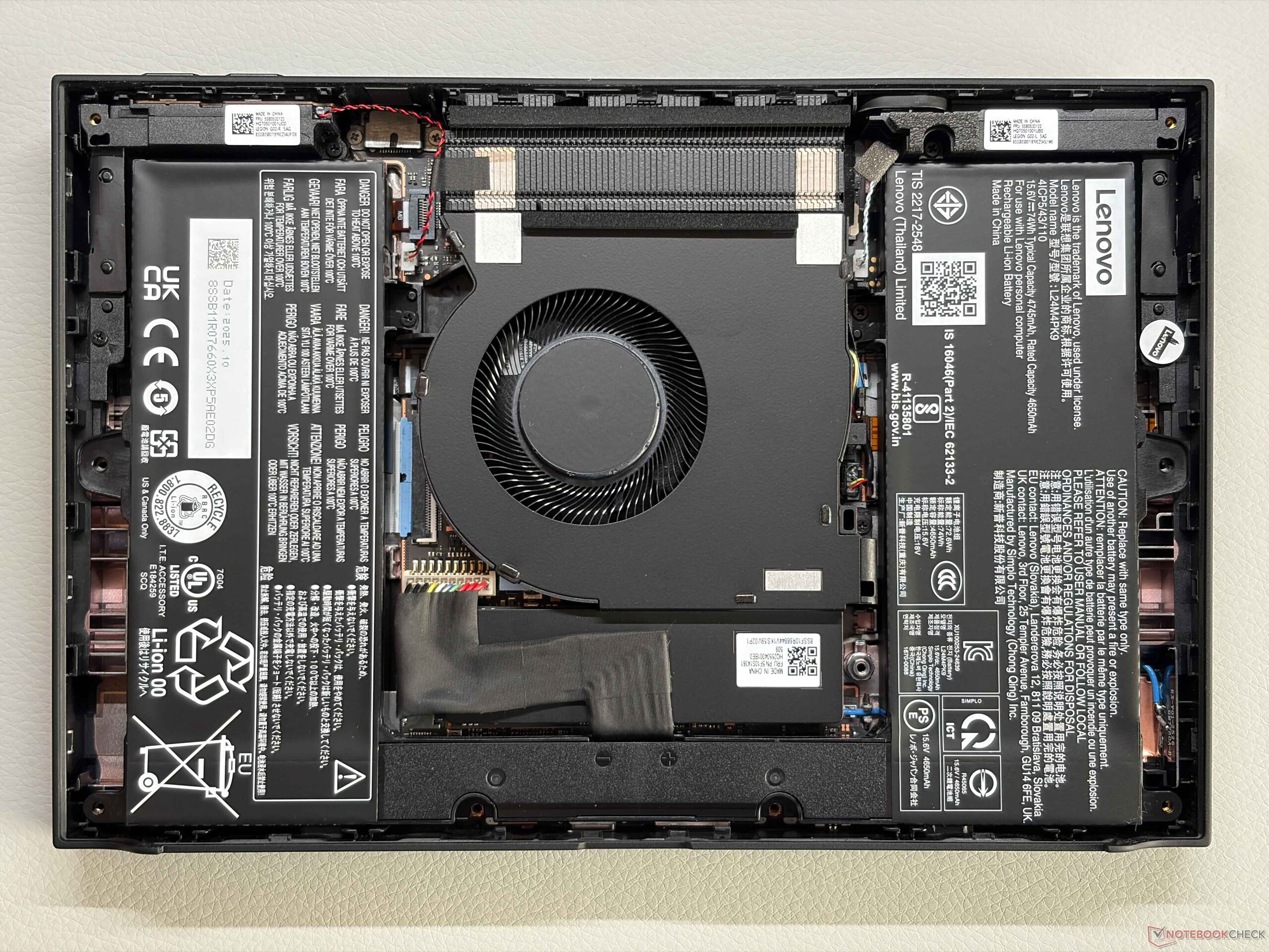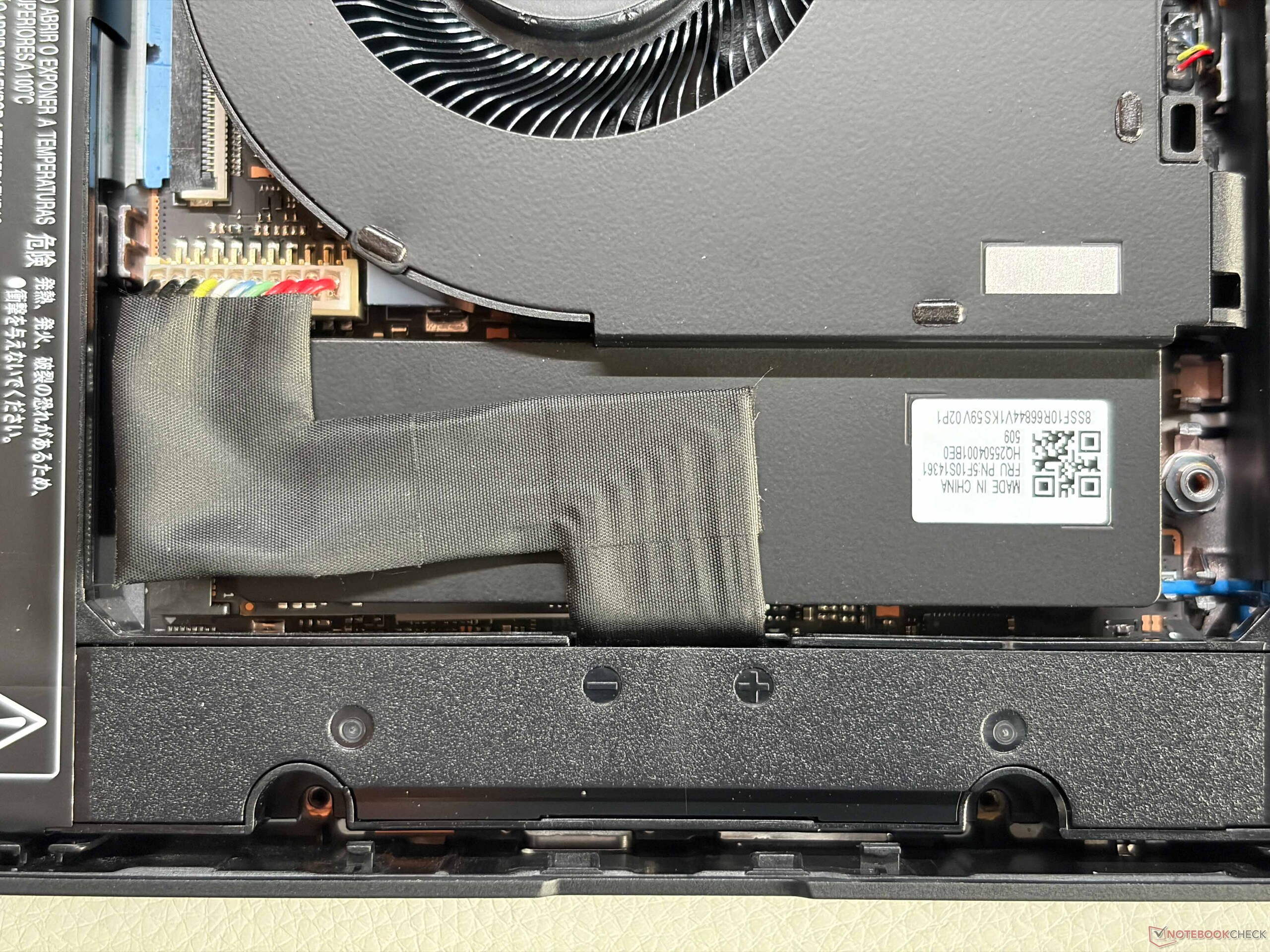 Internally, the layout has also been redesigned. The batteries are now positioned on both sides, with a single fan located in the center. The M.2 2280 SSD sits underneath and can be replaced, although a cable connection must be disconnected first. Despite its high price, the device still does not support Wi-Fi 7.
