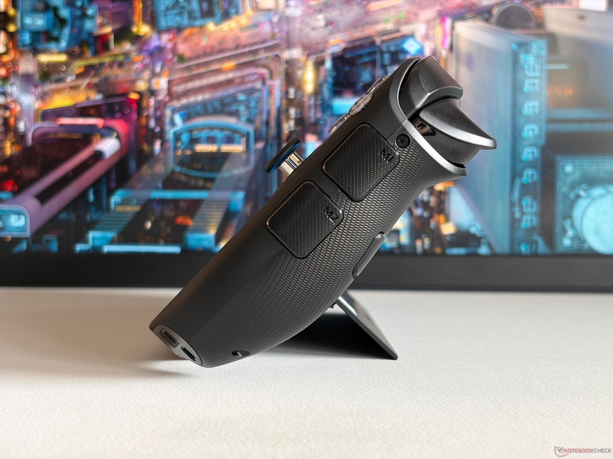 The two controller halves can be detached, and the connection remains very solid when they are docked. As a special feature, the right stick can be used like a mouse in FPS mode, which we covered in detail in our review of the first Legion Go. In everyday use, however, the two outer buttons can be somewhat irritating, as they are easily pressed unintentionally.
