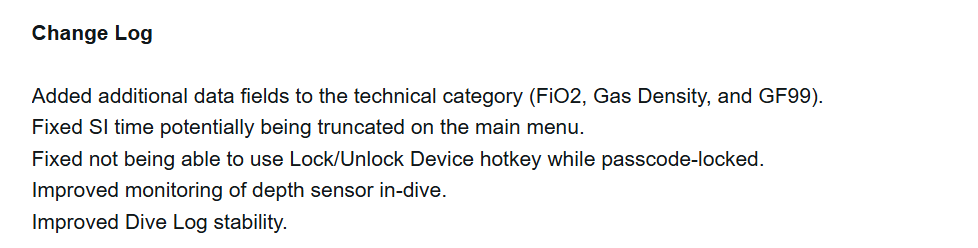 System software version 2.07 brings new technical data fields for the Descent X30. These are the Fraction of Inspired Oxygen (FiO2), Gas Density and GF99. In a post on the Garmin Forum, the company indicates that it has improved in-dive depth monitoring via the device’s sensor. Plus, the stability of the dive computers Dive Log is said to have been optimized.