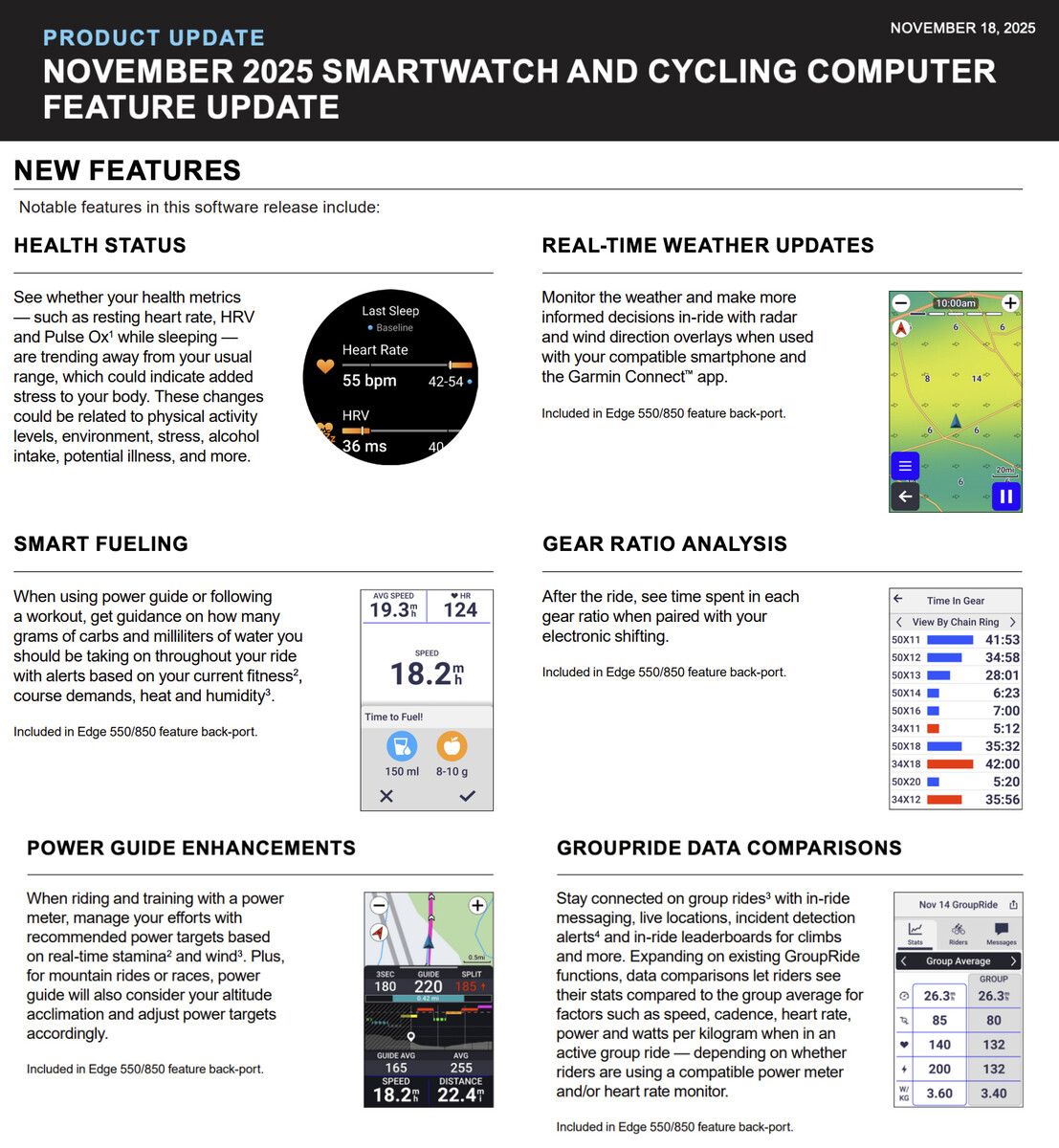 Garmin claims to be issuing its November 2025 Feature Update gradually. Hence, it may take a few more weeks before corresponding software updates land on eligible cycling computers and smartwatches. Unfortunately, Garmin has not confirmed the build numbers of the relevant software updates yet.