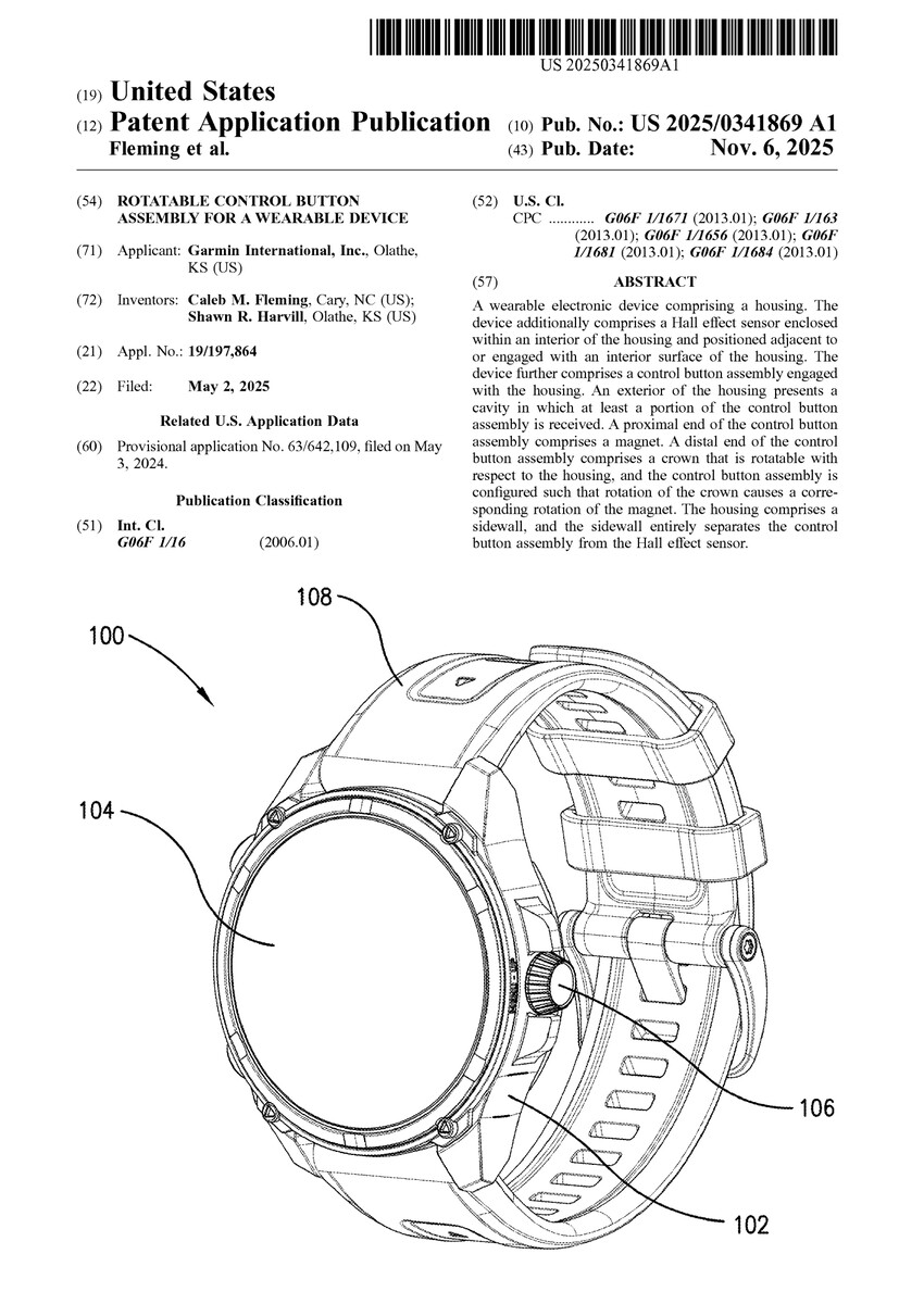 Initially, we suspected that a recent patent was the source of Gadgets & Wearables' findings. Unfortunately, Justia and other comparable websites returned no relevant results. However, Wearable has now discovered the patent that appears to underscore much of Gadgets & Wearables' prior claims. Filed as 'rotatable control button assembly for a wearable device' under the patent number 20250341869, Garmin describes the control button as follows:
