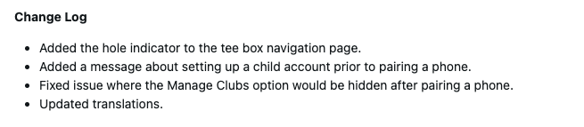 Also listed in the change log is a bug fix linked to the Manage Clubs function. The issue where this would be hidden unexpectedly upon pairing a smartphone is said to have been resolved. Alongside this, the release brings updated translations to the golfing smartwatch.