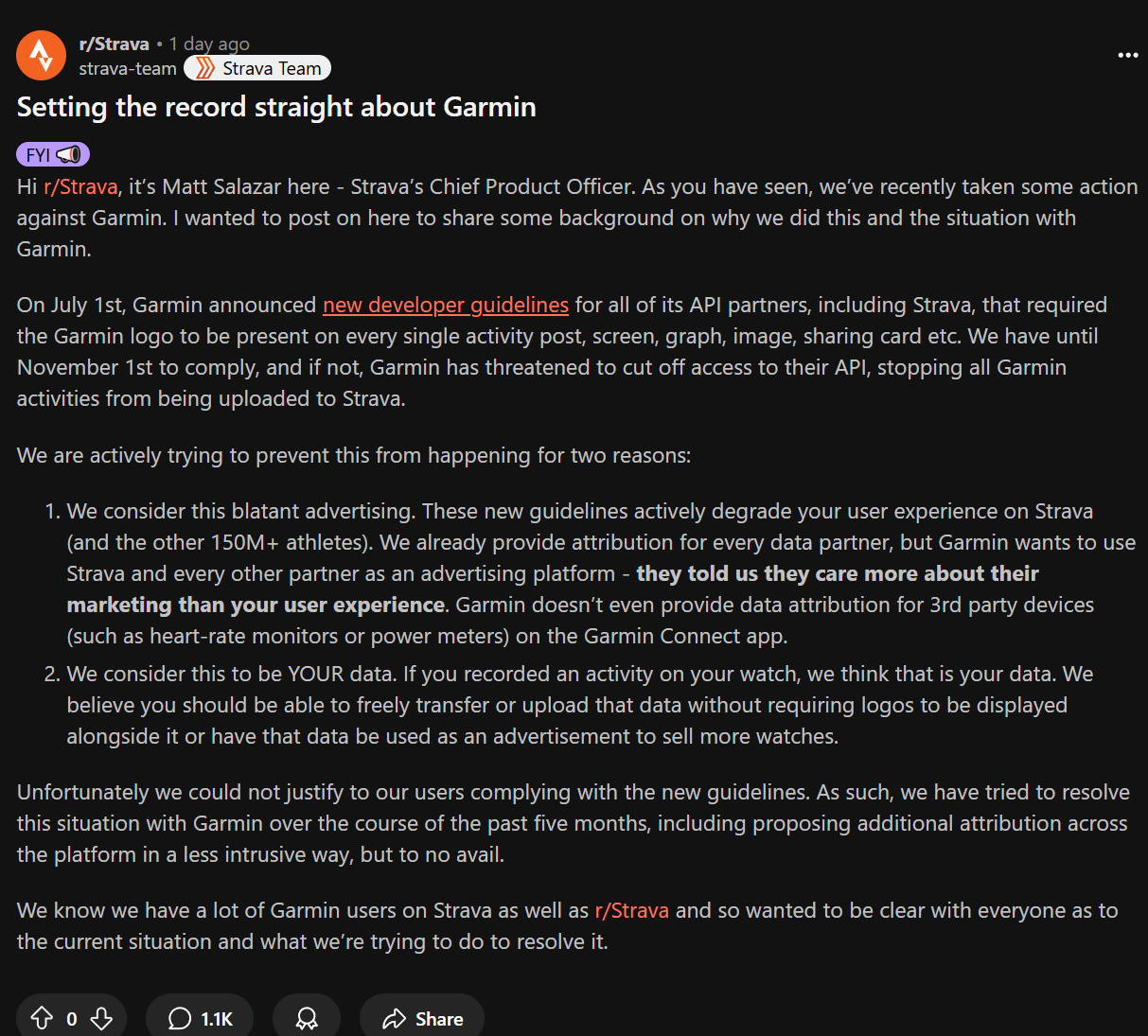 Meanwhile, Strava believes that Garmin is abusing patents 9297651 and 9778053, which Strava claims relate to 'generating user preference activity maps'. At this stage, it is unclear what effect, if any, this litigation will have on Garmin's software and hardware lines. With that being said, a recent post on Reddit by Strava's Chief Product Officer indicates the company's issues with Garmin are more than patent-deep. Screenshotted if removed in future, please see DC Rainmaker's explainer below for more details.