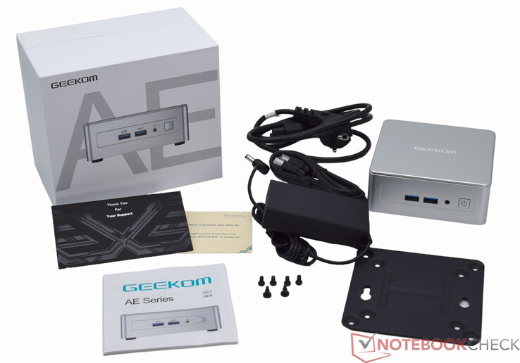 The Geekom AE7 is an inconspicuous mini-PC, which was nevertheless able to impress with its high performance in the test. Externally, Geekom has only changed the color of the already frequently used housing. The silver looks good on the device, giving the mini-PC an elegant and high-quality appearance. Haptically, Geekom has already set the bar very high with the newer models, and the Geekom AE7 must now be measured against this. Our test sample clearly loses the duel, as a housing made entirely of aluminum conveys a completely different feeling. If the price wasn't where it is at the moment, there would be no need to broaden the subject to such an extent, as the competition from our own company is only slightly more expensive or even cheaper. For example, there is the Geekom A8 with AMD Ryzen 7 8845HS for as little as $699.