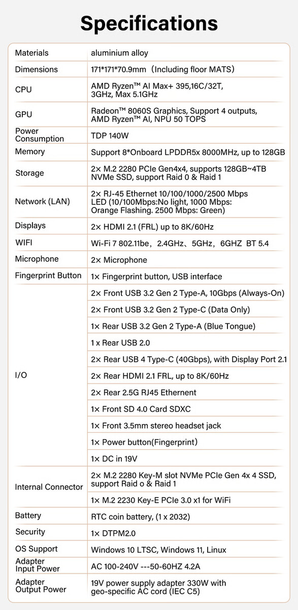 Also, the A9 Mega can only be picked up in one SKU, despite Geekom previously implying that multiple memory configurations would complement the device's AMD Ryzen AI Max+ 395 APU. As it stands, the A9 Mega is only available with 128 GB of RAM, unlike equivalent Strix Halo mini-PCs like the GMKtec EVO-X2. For reference, Geekom has also included the following ports within the mini-PC's 171 x 171 x 70.9 mm housing: