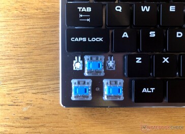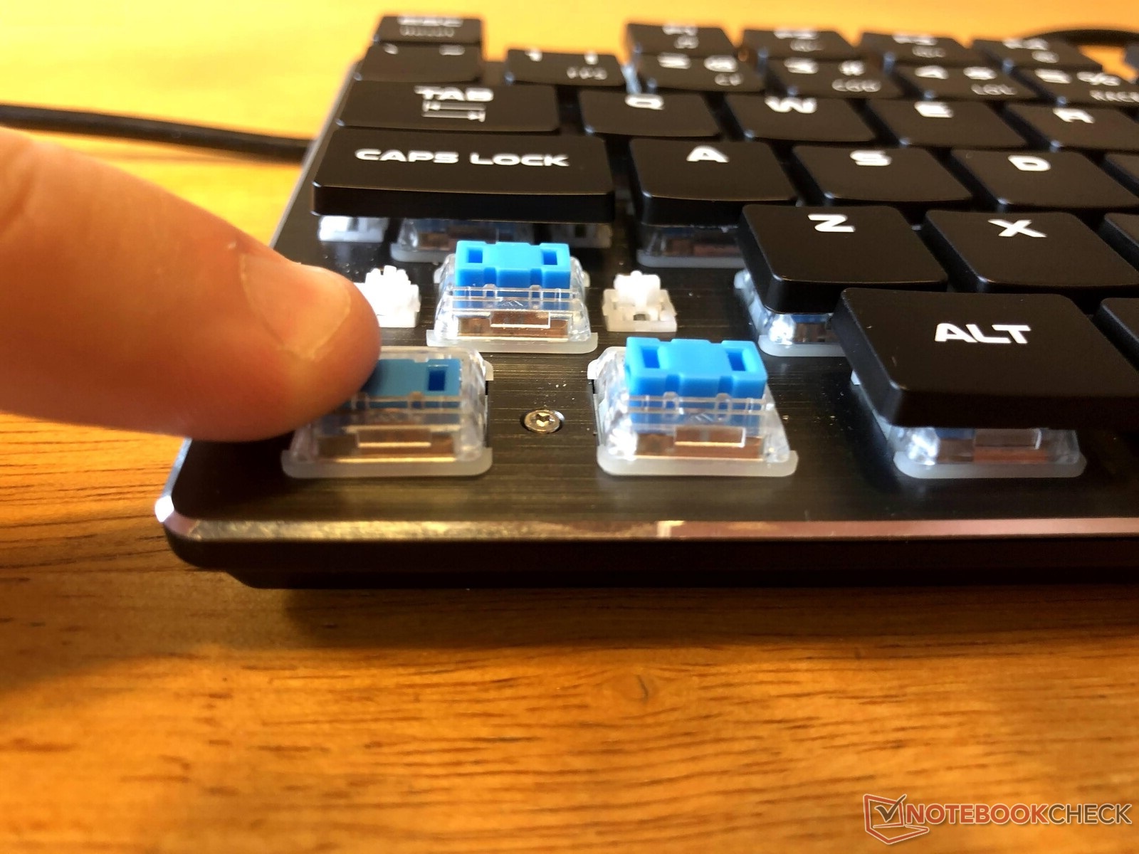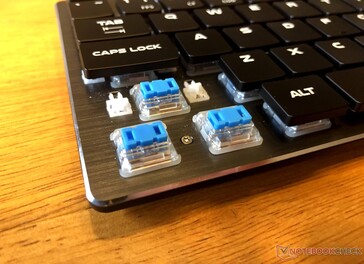 When using the keyboard, I noticed that the switches trigger very easily and have a light tactile bump that is perceptible but not distracting. The Content Slim Blue switches are very loud and sound like a machine gun during writing sessions. As such, office workers may want to look for something with quieter keys (MX Brown equivalents).