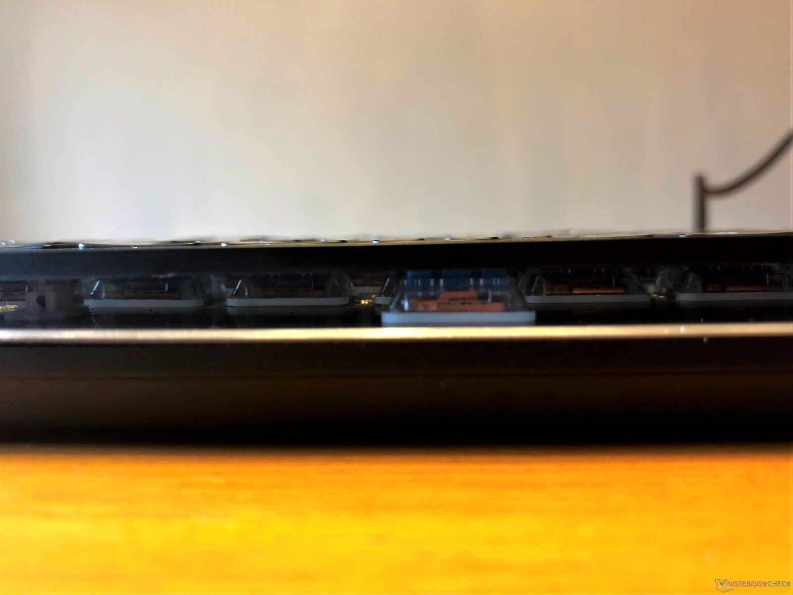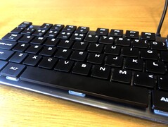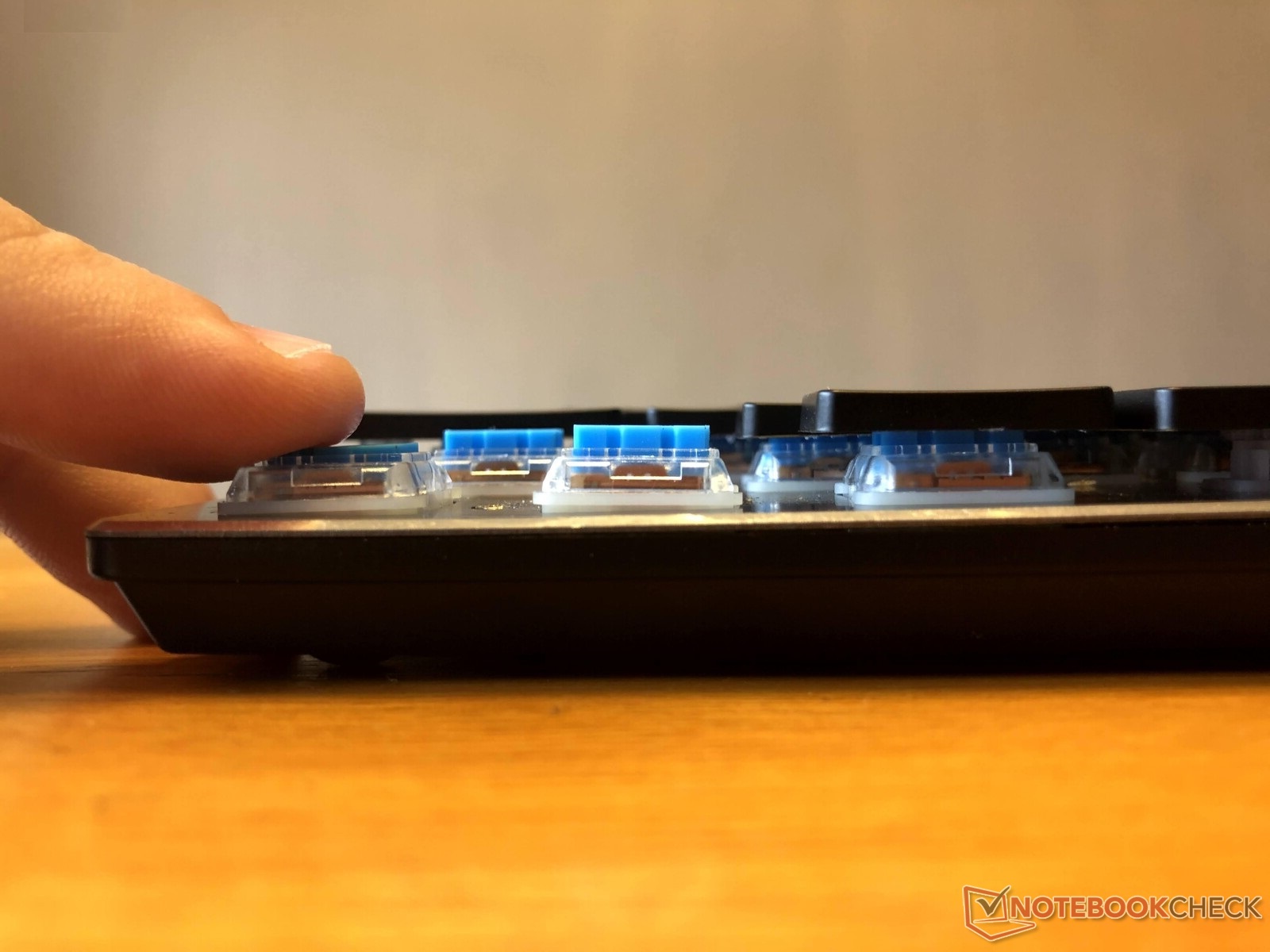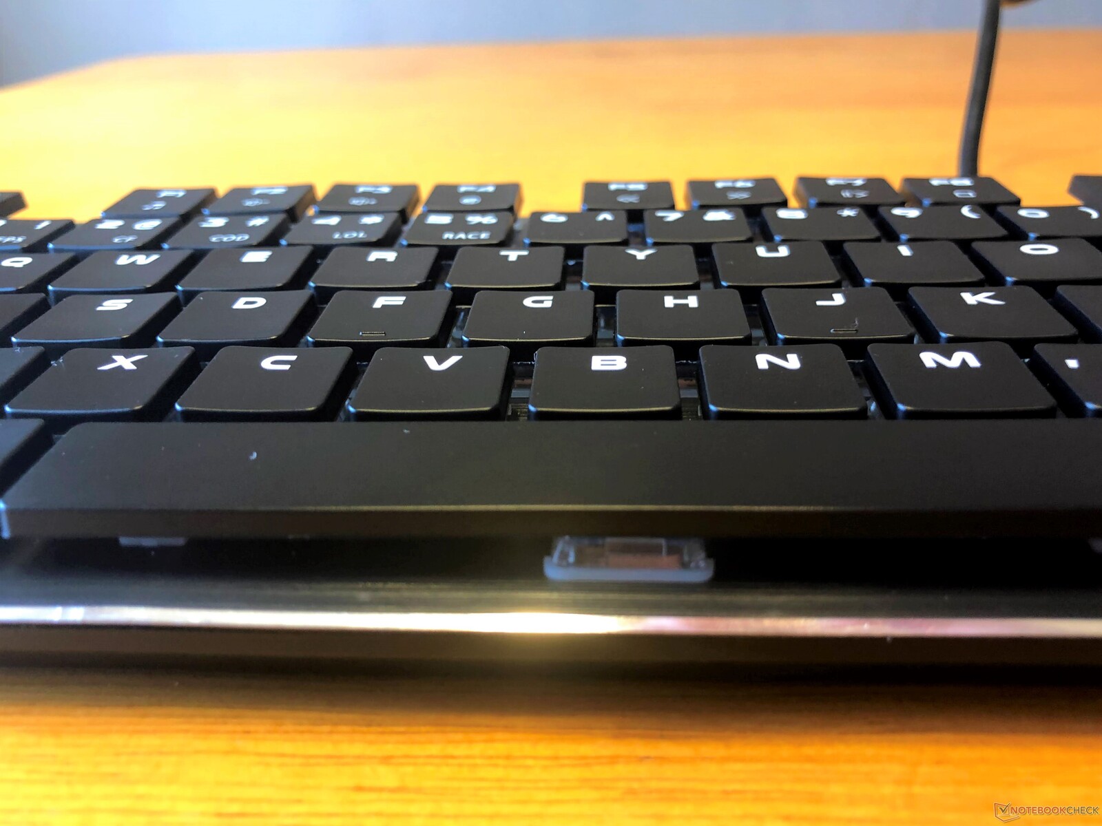 The keys use a chiclet design like many laptops rather than the traditional beveled design used in most mechanical keyboards. Because of this, the keys sit flush in a plane. While this helps keep the height down, it can make key recognition difficult, especially for touch typists. There is little tactile indication as to where one key ends and another begins, and it can be difficult to know over which row fingers lie.