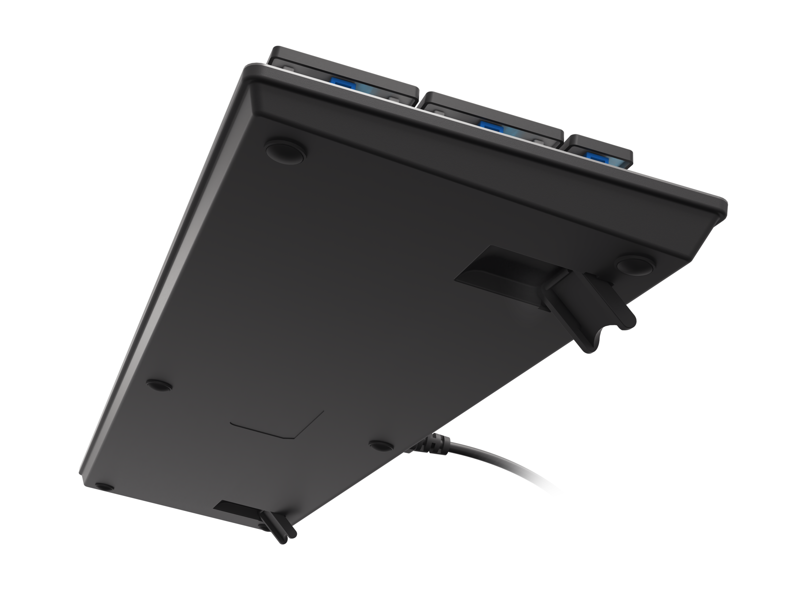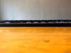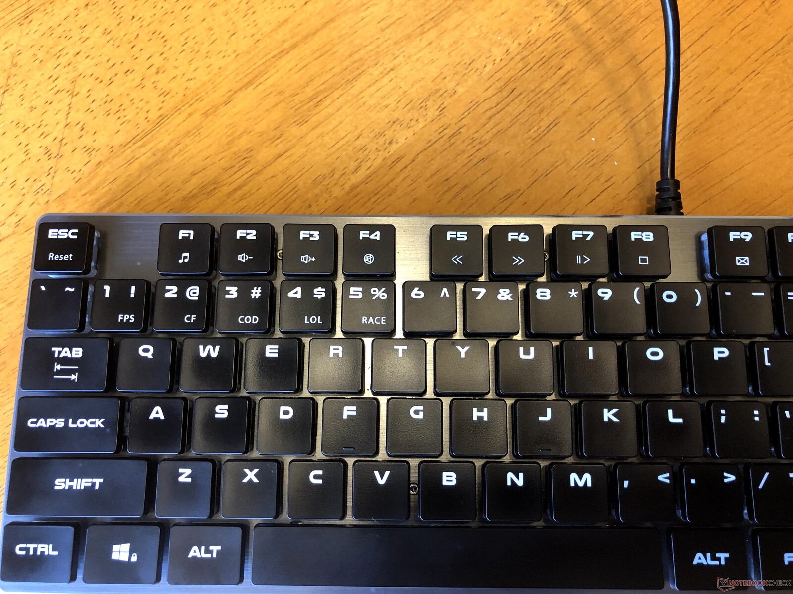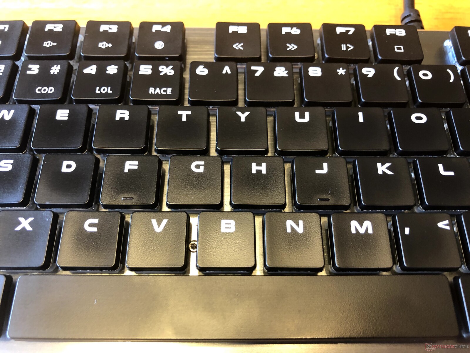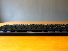 The keys use a chiclet design like many laptops rather than the traditional beveled design used in most mechanical keyboards. Because of this, the keys sit flush in a plane. While this helps keep the height down, it can make key recognition difficult, especially for touch typists. There is little tactile indication as to where one key ends and another begins, and it can be difficult to know over which row fingers lie.