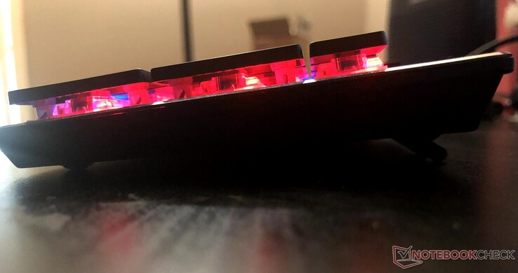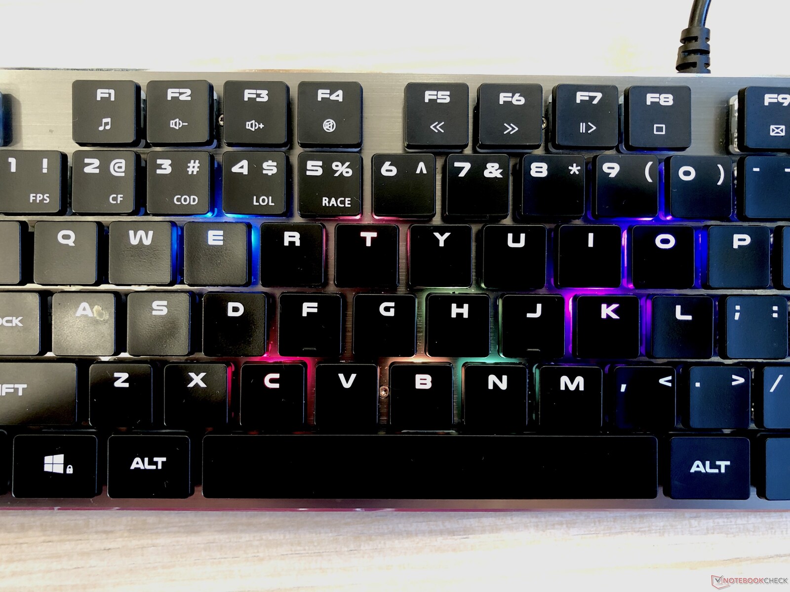 As mentioned, the Thor 420 RGB has a fairly low actuation force of 45 grams and a shallow travel distance of 1.2 mm. For a mechanical keyboard, these numbers are on the low side of things. The result is that the Thor 420 RGB feels snappy but can be a bit "trigger-happy." The keys don't take much to fire off, which is a godsend when fast reflexes are needed and a nuisance when they aren't.