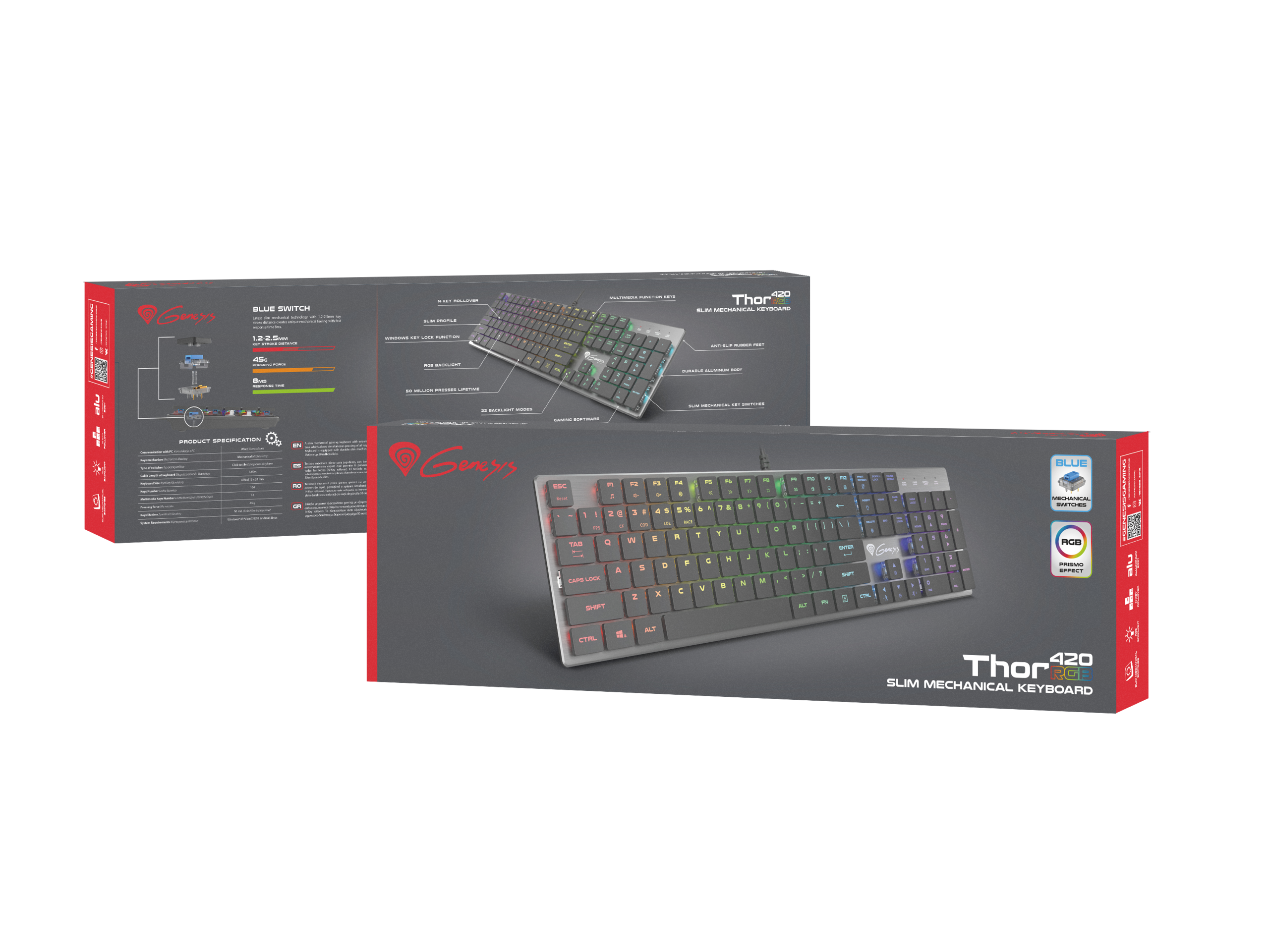 If you are on the hunt for a low-profile mechanical keyboard with lots of preset RGB backlighting modes and don't want the fuss of complicated software, the Genesis Thor 420 RGB should be at the top of your list.