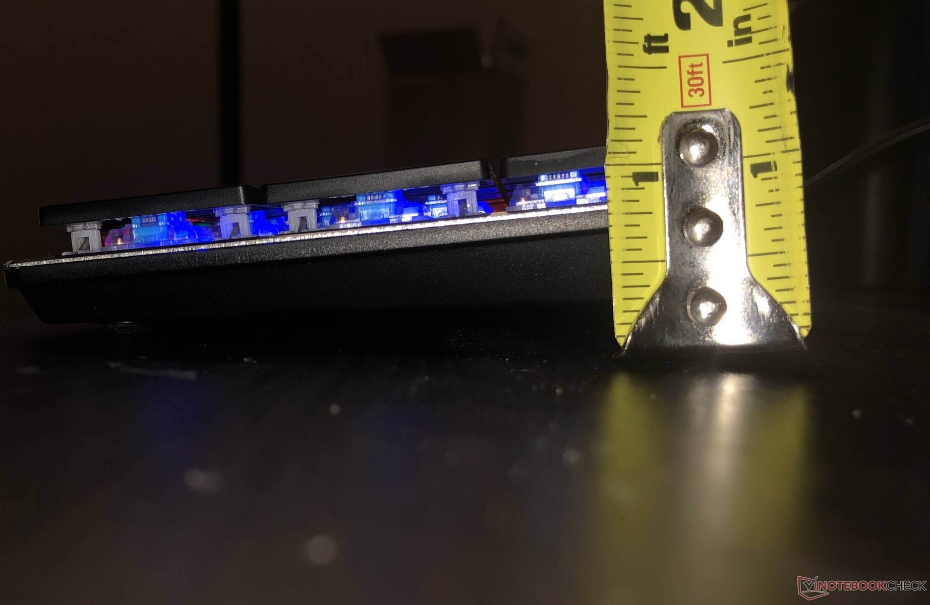 The Thor 420 RGB is a beautiful piece of kit. The aluminum keyboard deck sits atop a low-profile black plastic base. The keyboard is 418 mm long, making it a hair shorter than most other standard keyboards. It still takes up a fair amount of desk space.