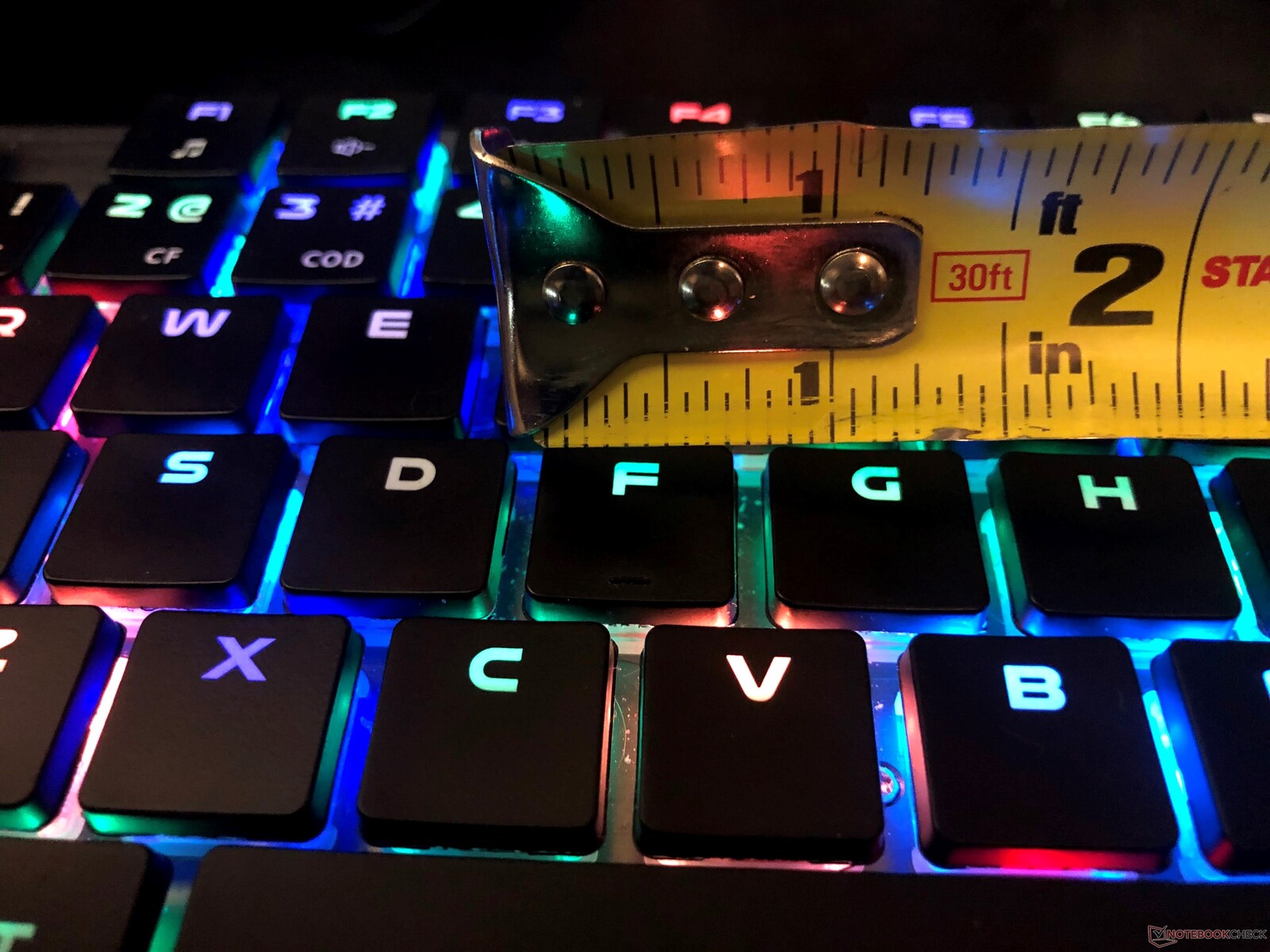 Another issue is the size of the individual keys. The letter keys on the Thor 420 RGB measure 15 mm2; most beveled keyboard keys (like those on the Logitech K120) measure 18-20 mm2. Some mechanical keyboards have slightly larger keys. While a difference of 3 mm on each dimension doesn't look large on paper, it alters the typing experience substantially. Coupled with the lack of a tactile boundary between keys, the small size requires major readjustment.