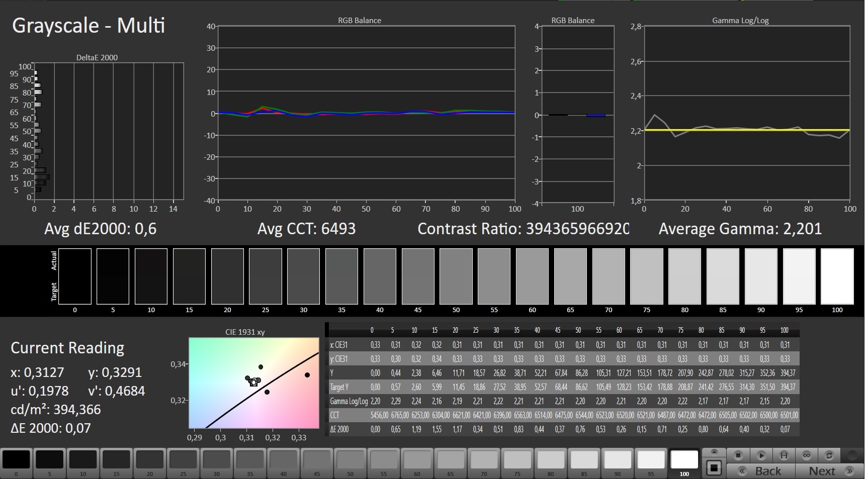 ΔE Greyscale Calman: 0.9 | ∀{0.09-98 Ø5}