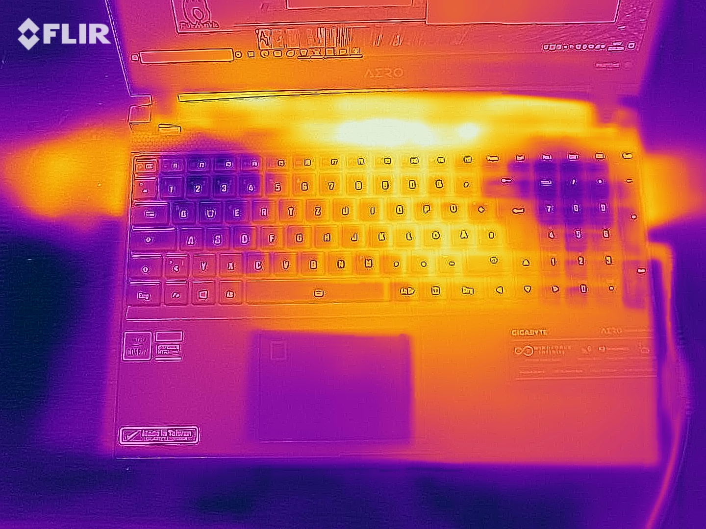 (±) The palmrests and touchpad can get very hot to the touch with a maximum of 37 °C / 98.6 F.