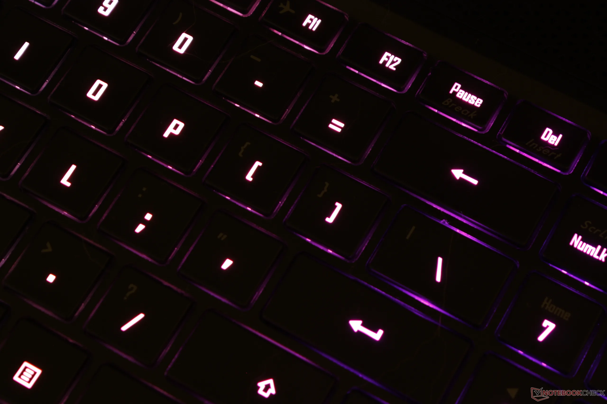 As shown by our images below, keys on the Aero 17 that have secondary Fn functions like {, }, +, -, PrtSn, and even ? are not illuminated at all. These keys are subsequently more difficult to see than they should be which can be a pain depending on the ambient lighting. We were hopeful that the upcoming Aero 17 would address this because it will be Gigabyte's latest Aero model to follow on the footsteps of the Aero 14 and Aero 15, but it appears that this small detail has slipped by the OEM once again.