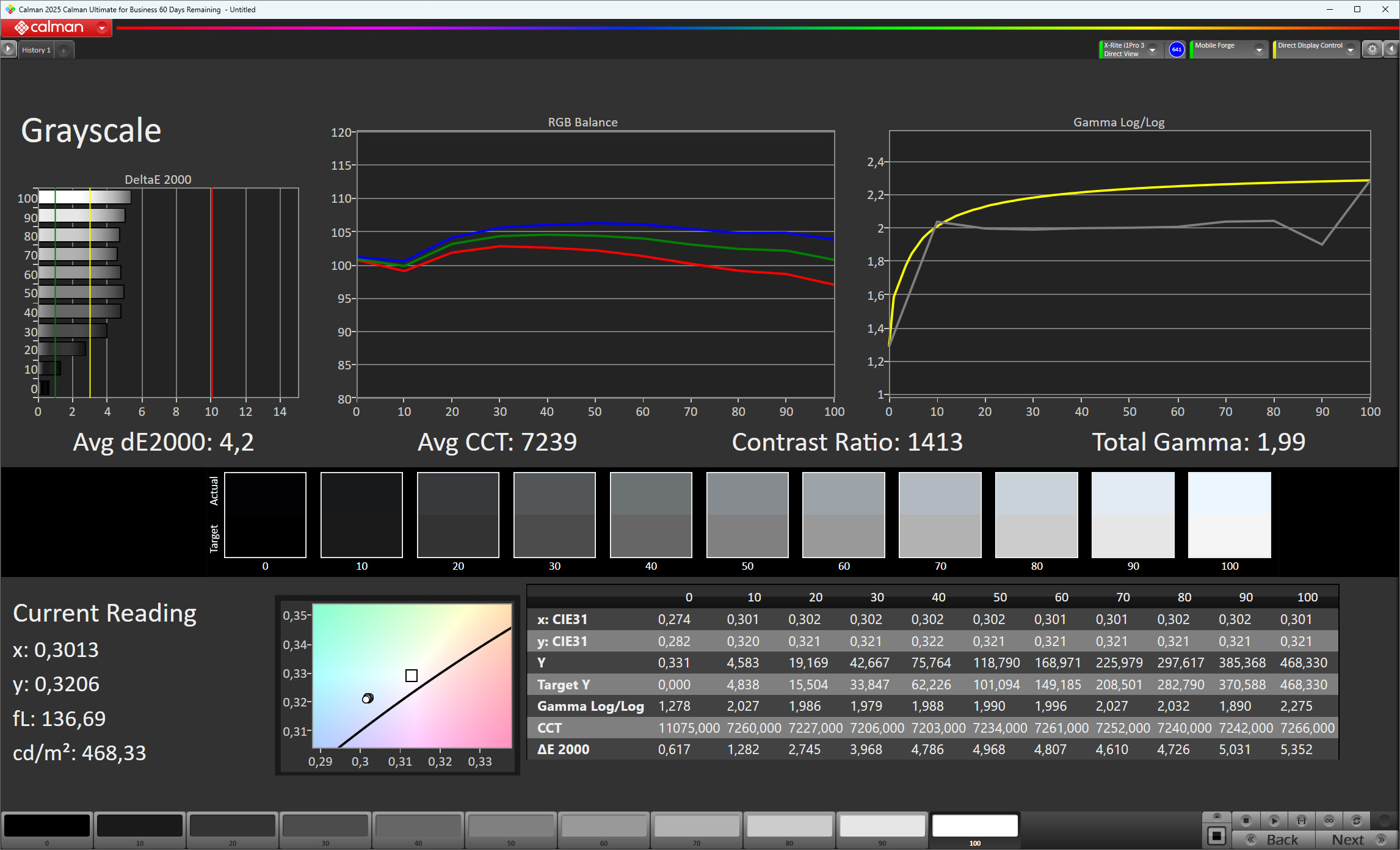 ΔE Greyscale Calman: 4.2 | ∀{0.09-98 Ø5}