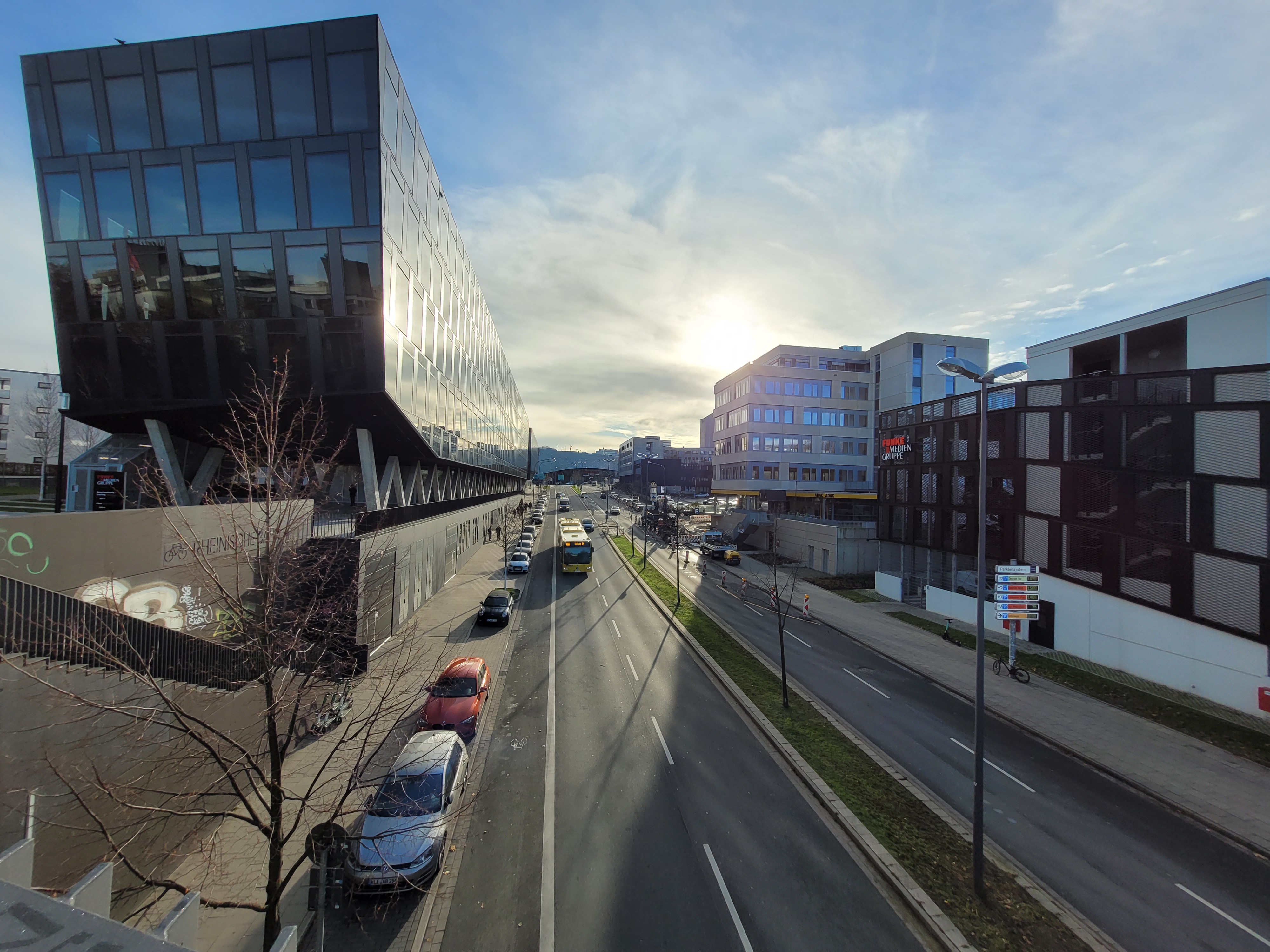 The front-facing camera takes good pictures and records videos in Full HD (30 FPS) at best. The triple camera on the back takes decent photos, but it quickly reaches its limits in backlight and shows a low dynamic range. Furthermore, bright areas tend to have smaller burned-out areas. The selectable HDR mode unfortunately does not change this