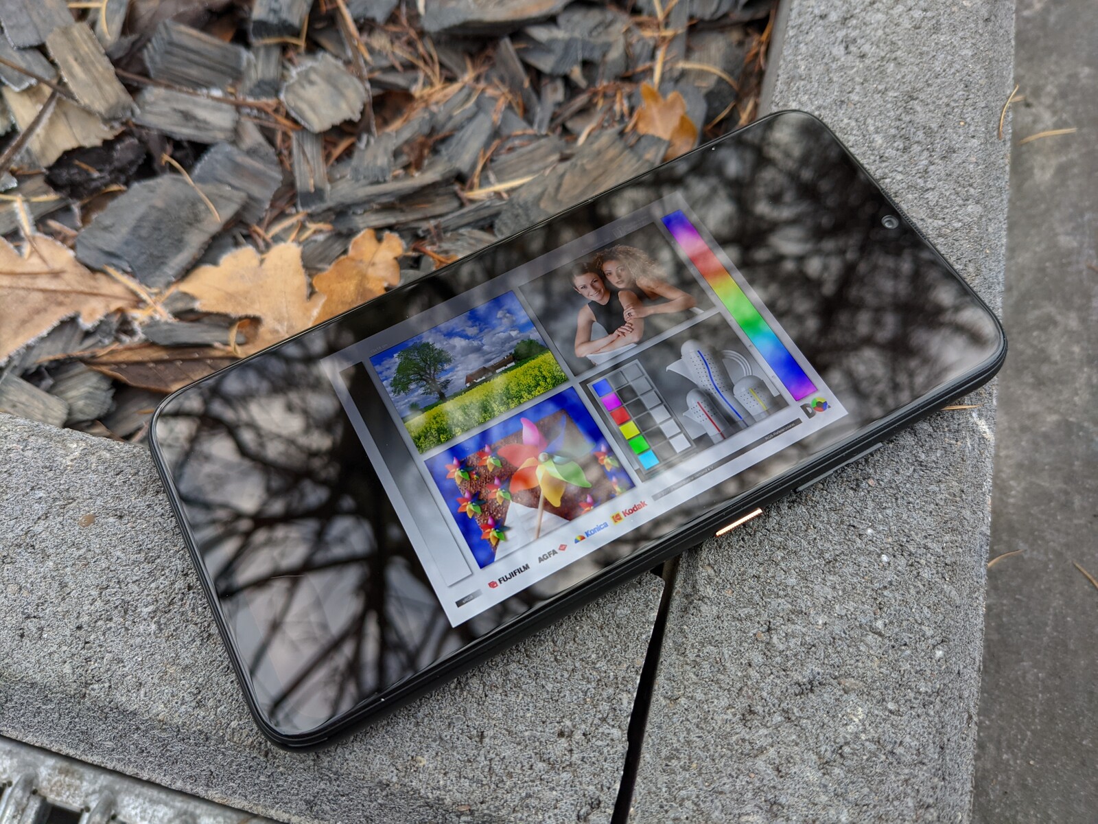 The USB-C port supports OTG. A jack port is also on board. An optional headset connected there serves as an antenna for the integrated radio receiver. A small notification LED is also hidden to the right of the front-facing camera