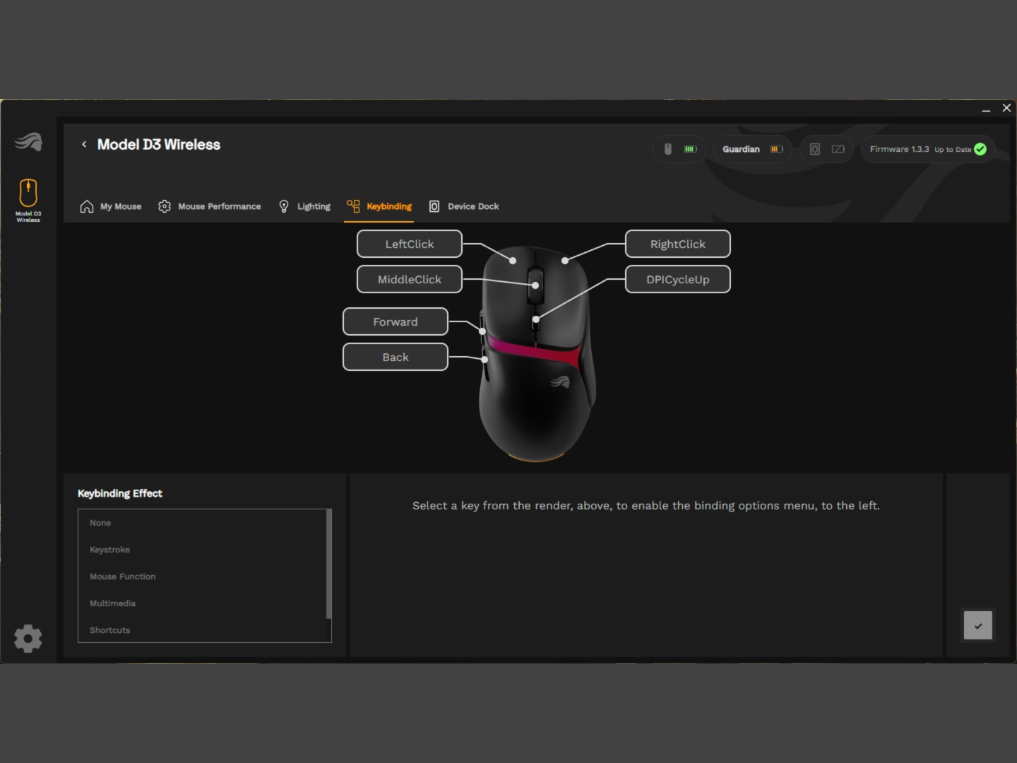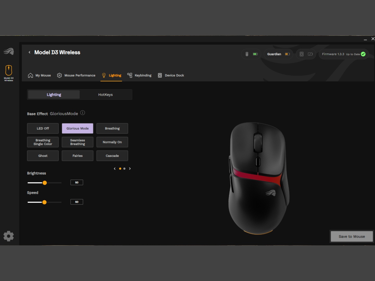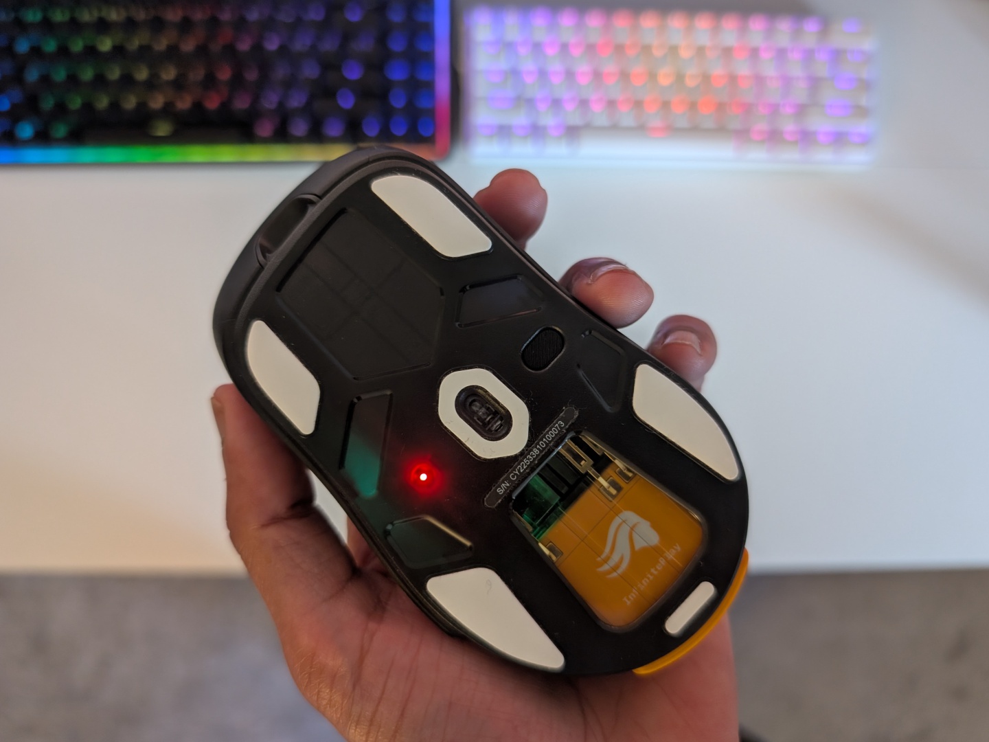 While the battery life falls short of the claims, the InfinitePlay system works as advertised. If you run out of the removable battery, it automatically switches to the Guardian battery without disconnecting. That gives you enough time to finish up the game and swap the batteries. Since its only 200 mAh per battery pack, they don’t take very long to charge either. We did notice that a couple of times when the removable battery died, the mouse turned off rather than automatically switching to the Guardian battery. Turning it back on manually then switched to the Guardian battery, something that Glorious is working to fix with a firmware update. For the most part, it switched automatically between the removable and the internal battery.