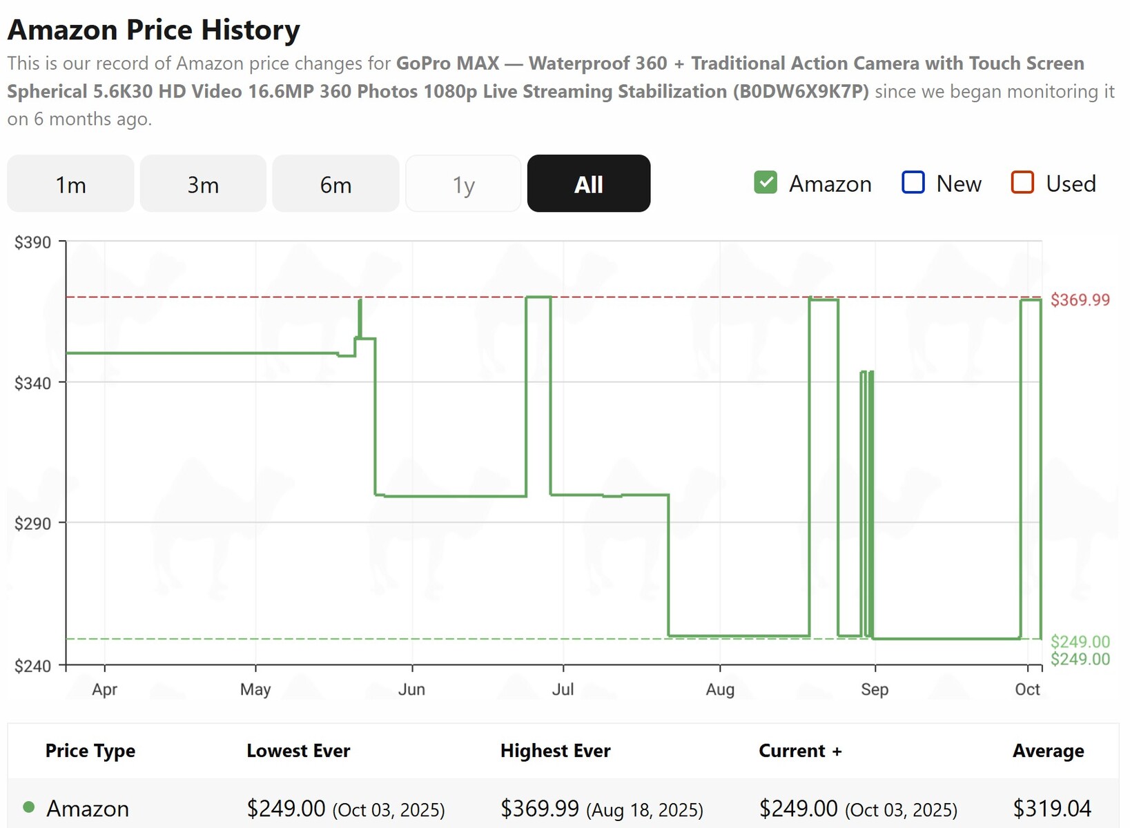 The GoPro Max (v2 2025) 360° action camera is at its lowest price on Amazon after a $120.99 discount off its MSRP of $369.99. Its dual-lens design captures the entire scene around the action camera, making it ideal for filming large groups and action sports up to 16 ft (5 m) underwater without the need to aim.