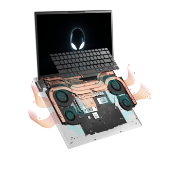 Though they may look similar from the outside, the Alienware x17 has several key upgrades from the x15 because of its larger form factor. Firstly, the x17 carries optional CherryMX mechanical keys whereas the x15 is limited to the standard membrane-based switches. Secondly, its GPU TGP is significantly higher (165 W vs. 110 W) for faster graphics performance when configured with the same GeForce RTX GPU. Thirdly, the x17 incorporates all the new cooling technologies of the x15 (quad fans and liquid metal thermal paste) plus a new overlying vapor chamber cooler and a larger 12-phase voltage regulator. And lastly, the system has more ports, more display options, and a larger rear RGB "ring" made up of 100 Micro-LEDs.