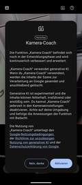 First, it must be activated in the settings and can then be used via the small AI camera icon in the camera app. As soon as the icon is tapped, the algorithm analyses the camera's live view, which happens in the cloud. The coach then provides a selection of possible image compositions and guides you through the process in several steps, which we have summarised here in a series of images, including the result (last image):